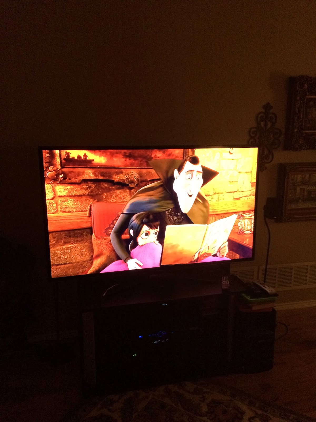 Andrew left after bath time to watch the National Championship with his friend Ty (who used to play for Auburn), so I told the kids we could watch a movie before bed. They picked Hotel Transylvania…which is really cute!