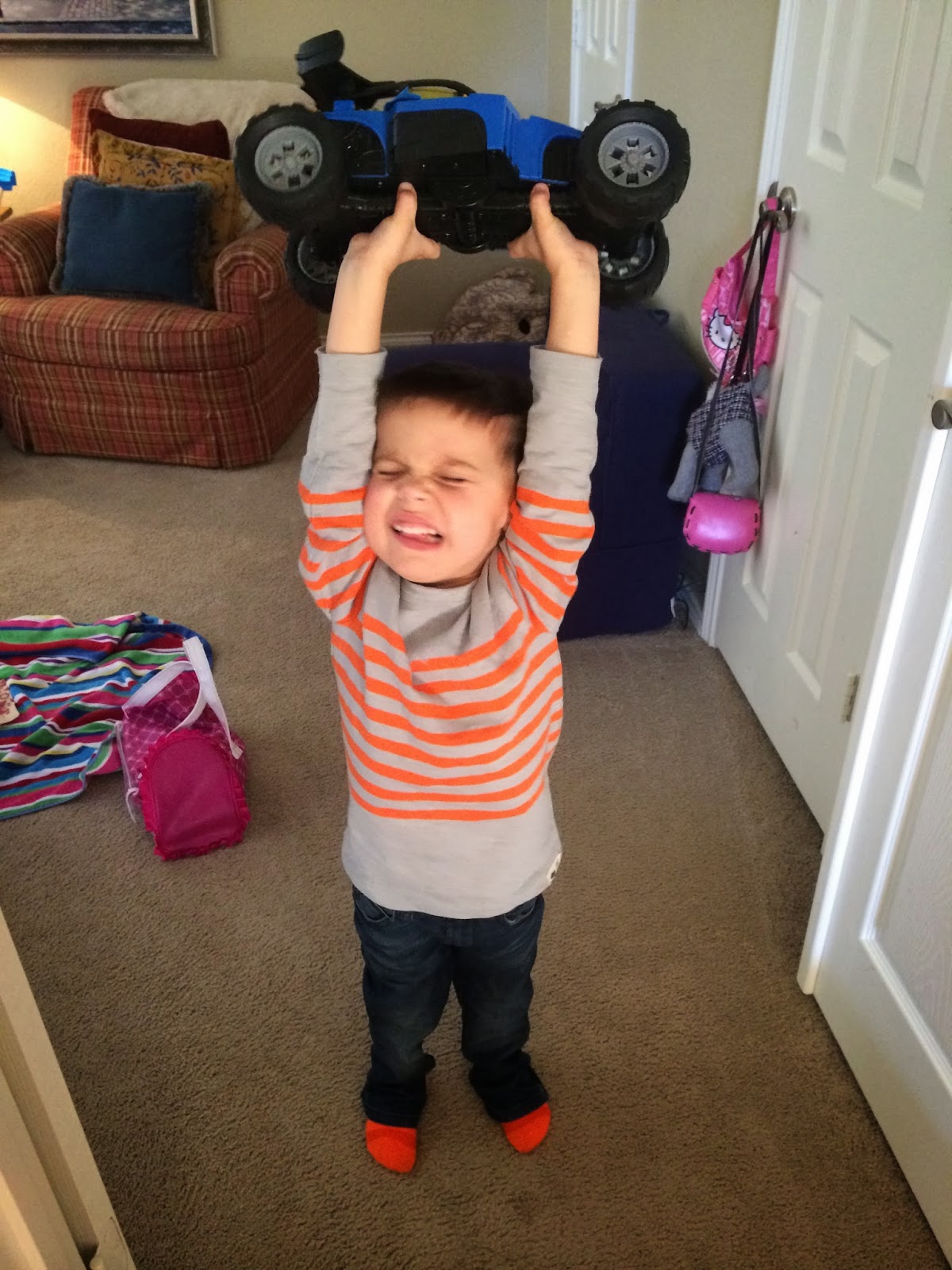 Around 4:50, I heard Smith wake up and some commotion in his room. Oh goody…he now has a zoo too.