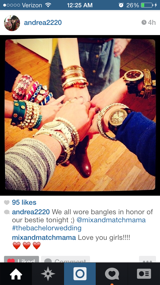 And at home, my BFFs were all wearing bangles in my honor and watching the show together. I was texting them throughout the night. Love, love, love these girls!