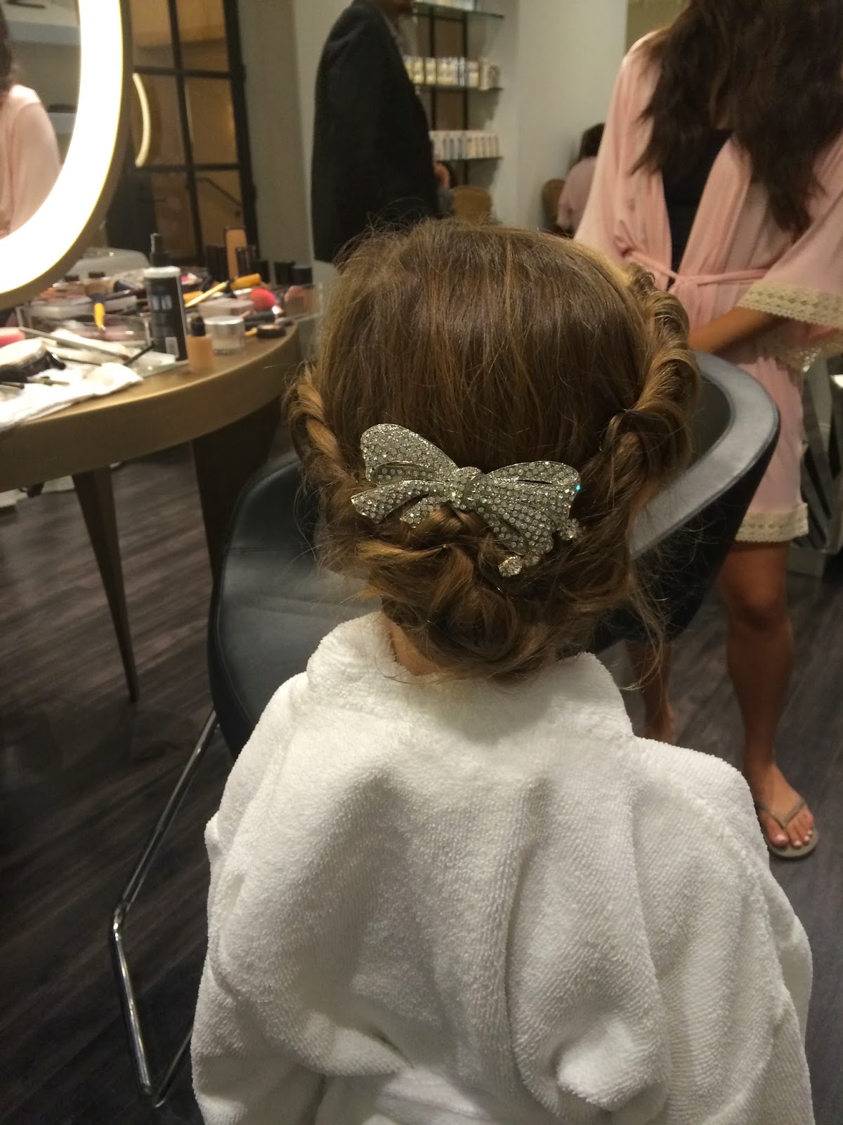 After our room service, we headed back to hair and makeup for a quick touch-up. It took a village, but we got all dolled up.