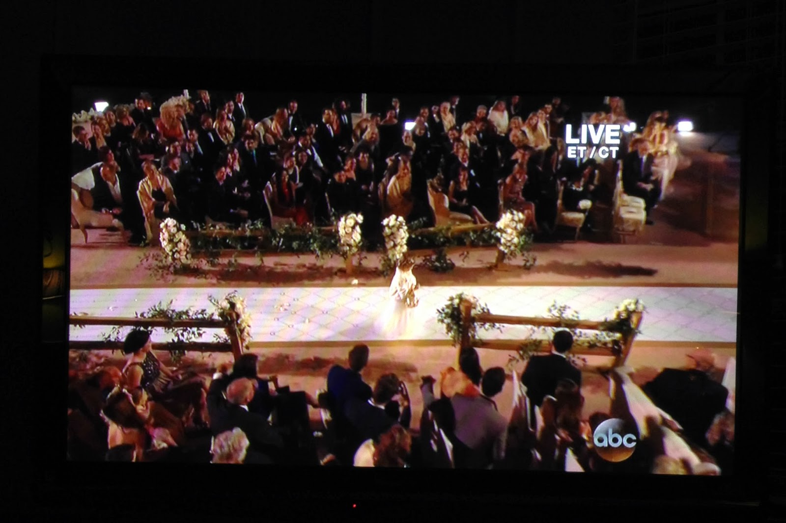 There were 5 beautiful looooooooong tables. One for family, one for family friends, one for industry people (Bachelor alum, other famous folks, etc), one for Bachelor crew/producers and one head table for the bride, groom and wedding party.