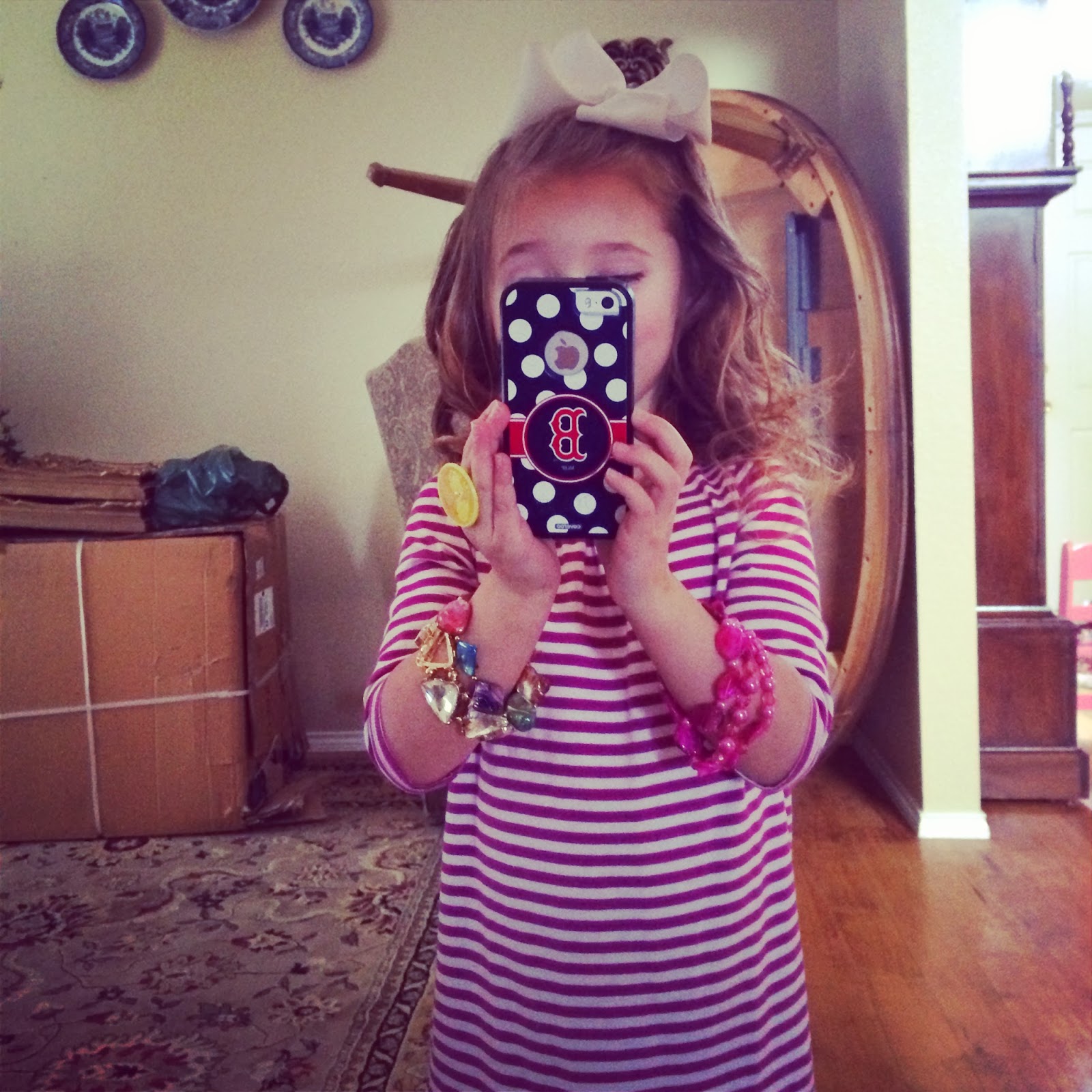 I let her pick out her own outfit for dinner on Friday night. I actually think she did a really good job. She’s already into mixing patterns like her mama ;). (And she’s holding up her “diamond” hair clip because when she took off her hat, she put it on her head…but for the picture, you couldn’t see both…so she’s modeling it too.)