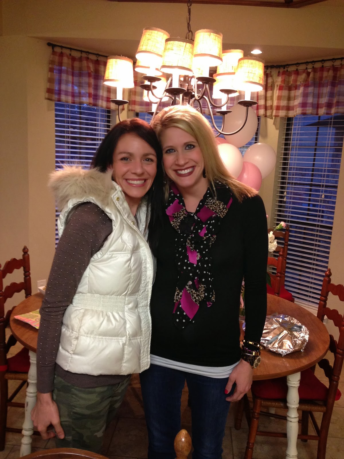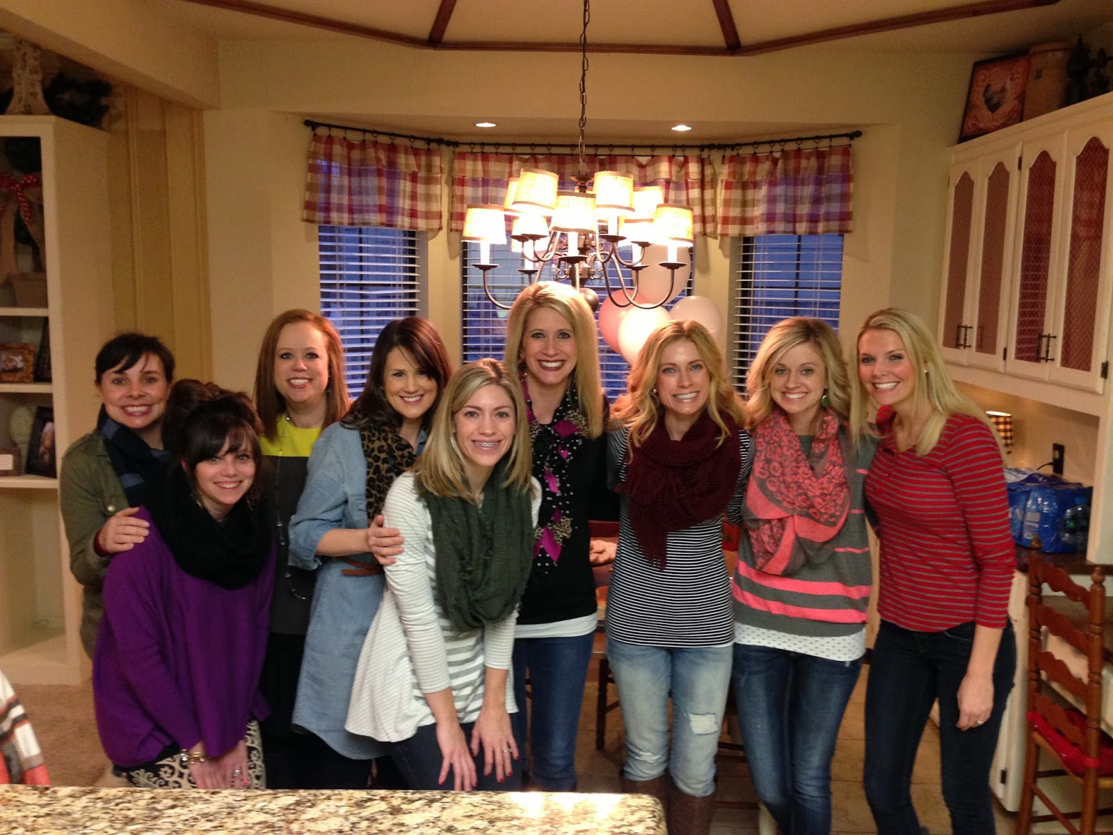 Last week, my girlies and I celebrated sweet Rachel who is about to have her 3rd baby…this time, a little girl! OK…seriously…can you even spot the 35 week pregnant girl in this picture? She’s the one in the center wearing the black shirt and scarf. You can’t even tell she’s about to give birth!