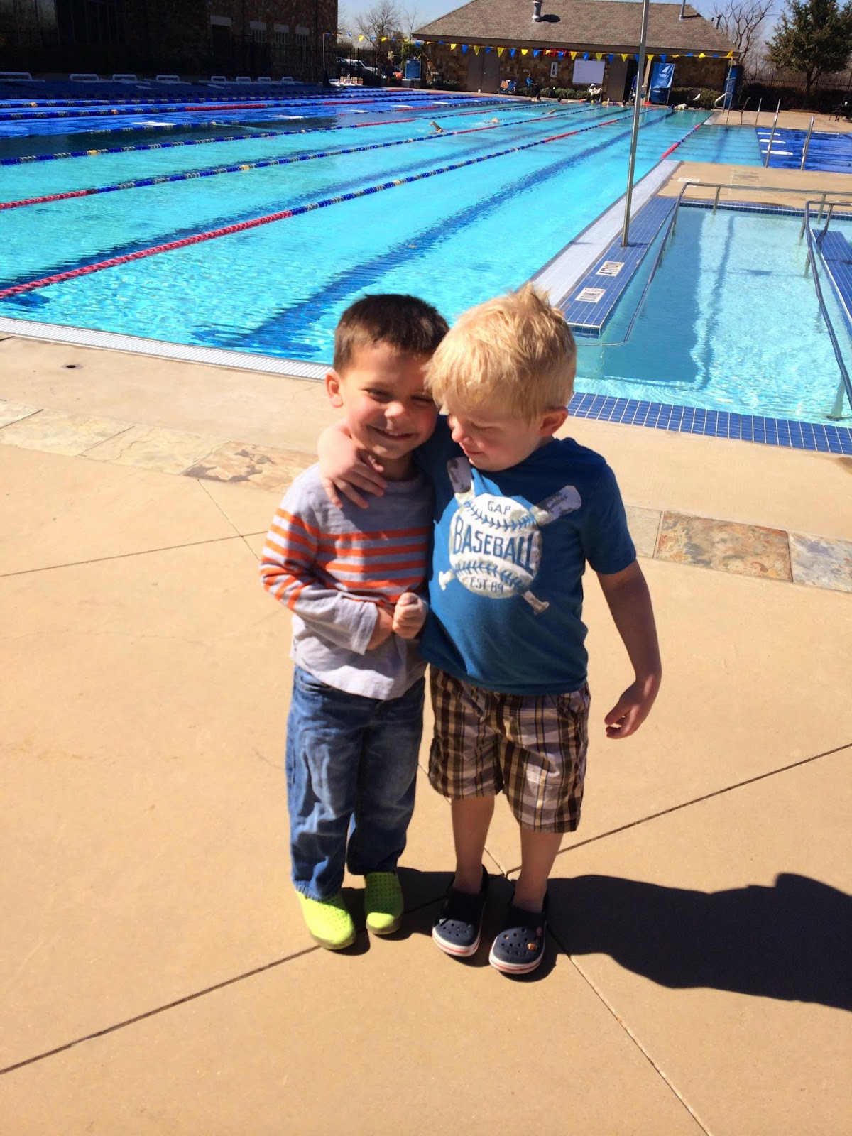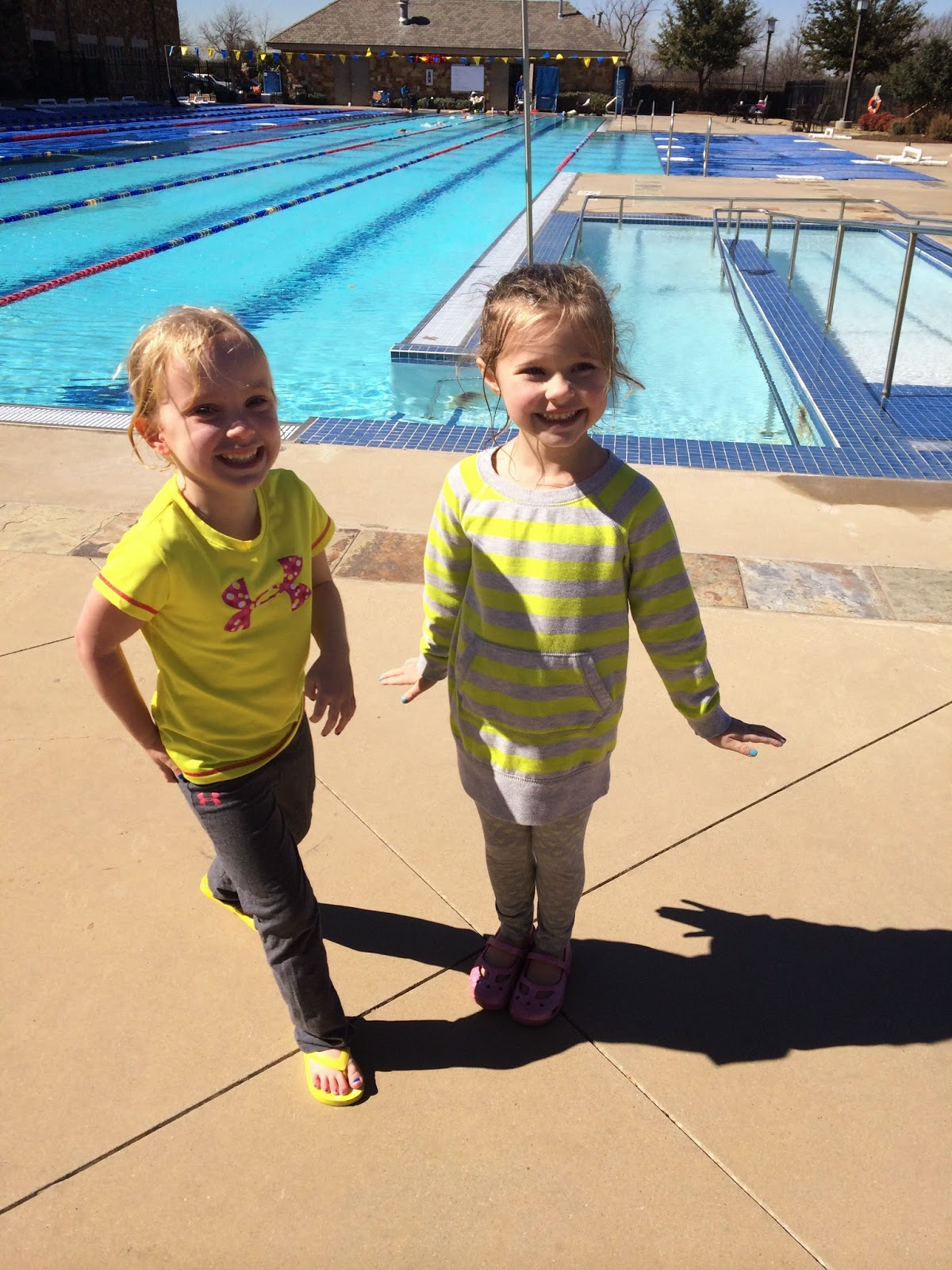 It was 56 degrees outside but Erika and I took the kids swimming. Well, the kids swam in the heated pool and we sat in lounge chairs in our sweats. The kids had the very best time and swam for two hours! A great morning!