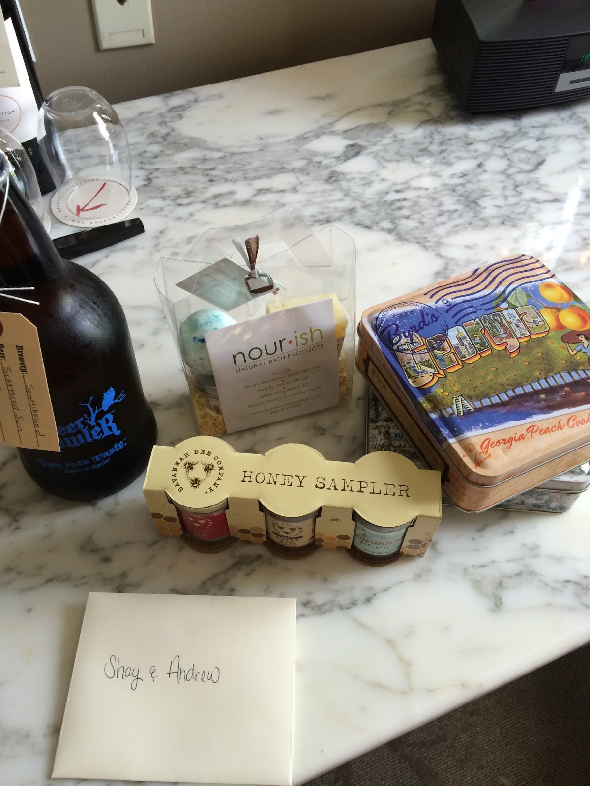 When we got back to our hotel, Jamie had dropped off a goody bag filled with things he and Brooke love in Savannah (soaps, honey, beer and cookies…perfection!).