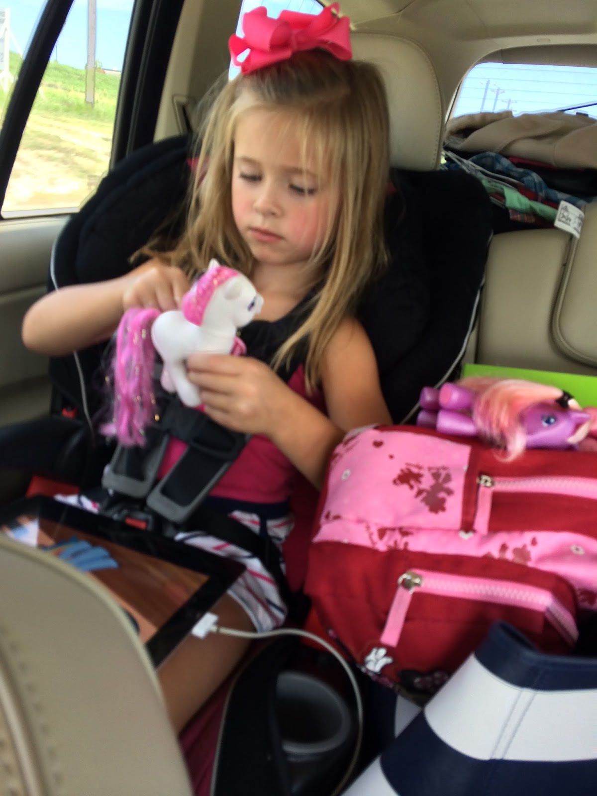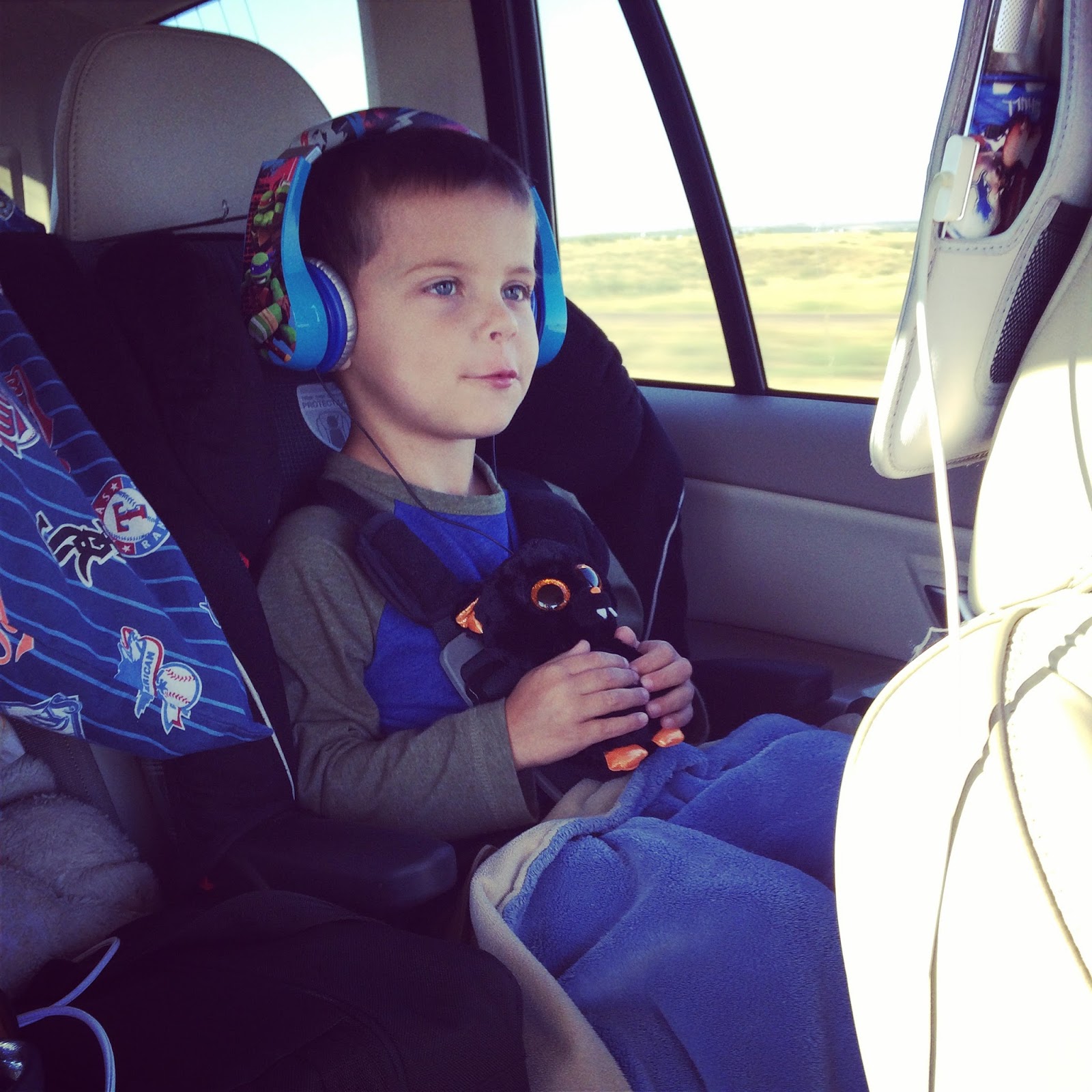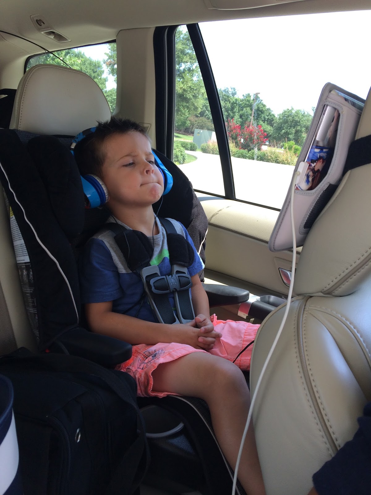 My kids are so good in the car. I did a post here about traveling in the car with kids…but I really think it just takes a lot of practice. Smith did this most of the way…watch movies. (Several of you have asked me where we found the iPad holders and they’re from the Apple Store.)