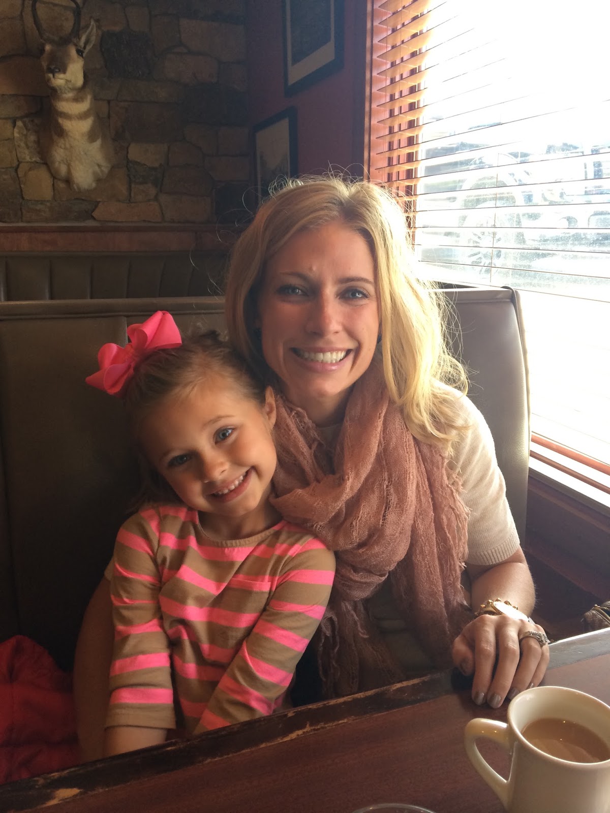 Great post!! What are the deets in some of your outfits….navy striped shirt, the tank underneath, the lovely pink scarf, and that oatmeal top in the pic of you & Kensington eating breakfast? Thanks
