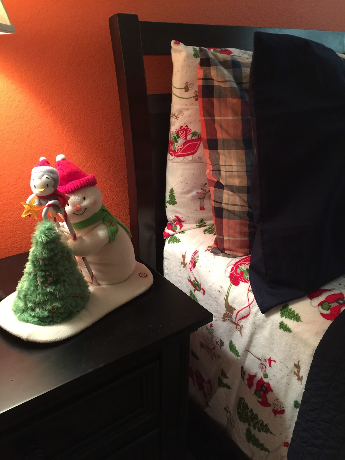 We put a little 4.5 tree upstairs and added big colorful bulbs. It’s really cozy at night.
