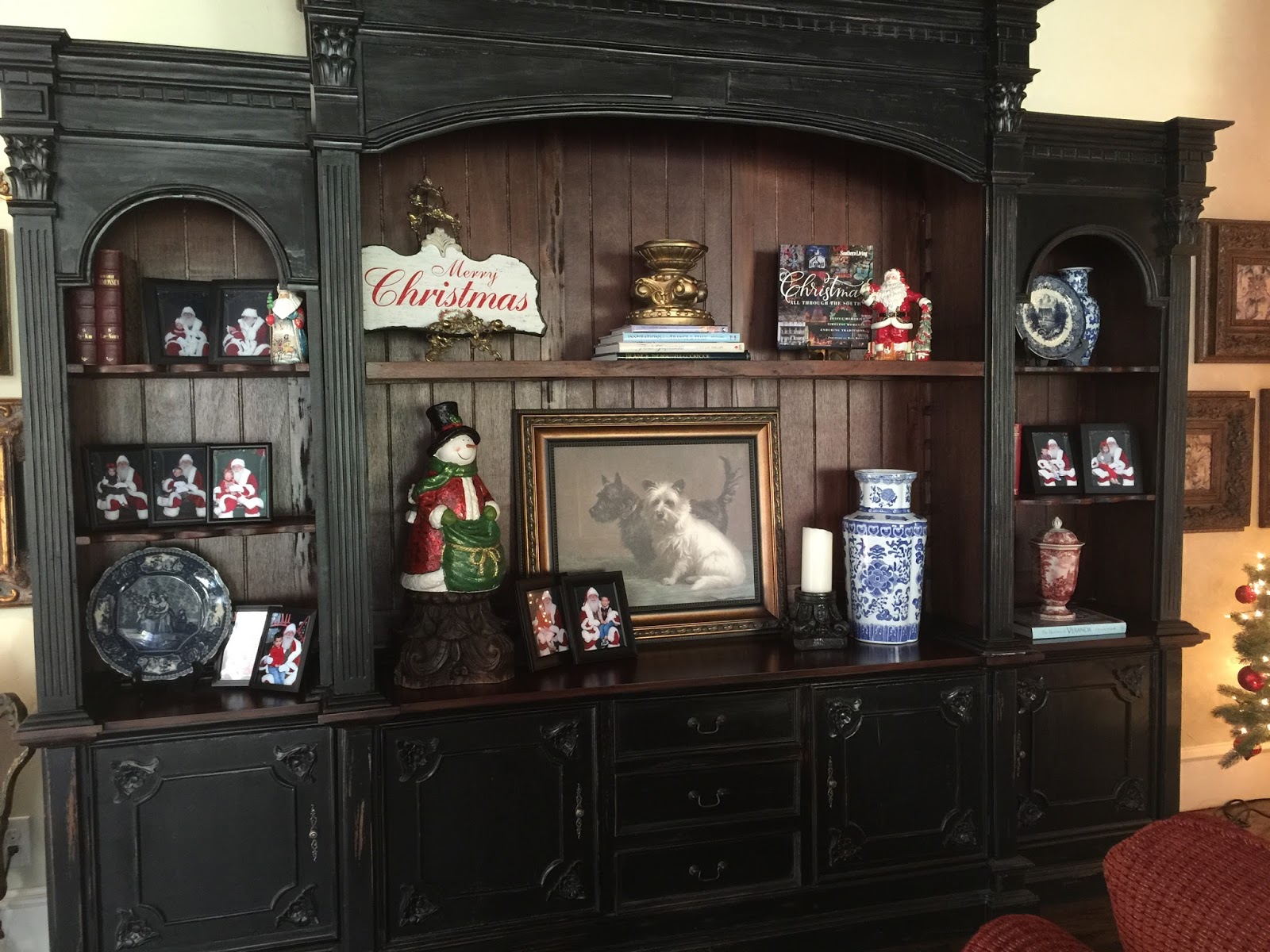 I took out what I typically keep in here and added Christmas things along with framed pictures of my kiddos every time they’ve sat in Santa’s lap.