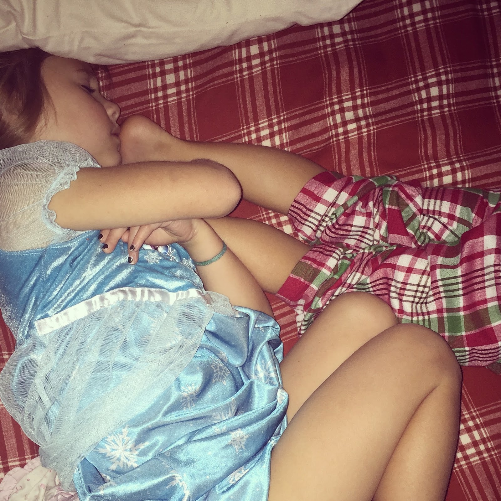 Friday morning, I went to wake up the kids for school and found this…we put them in their own beds at night and often find them like this the next morning. Thankfully, Kensington still has all of her teeth.