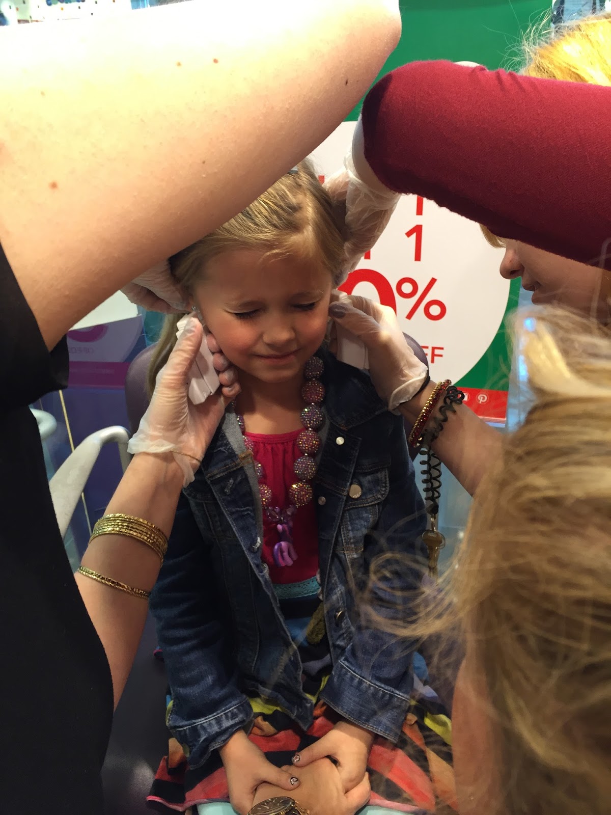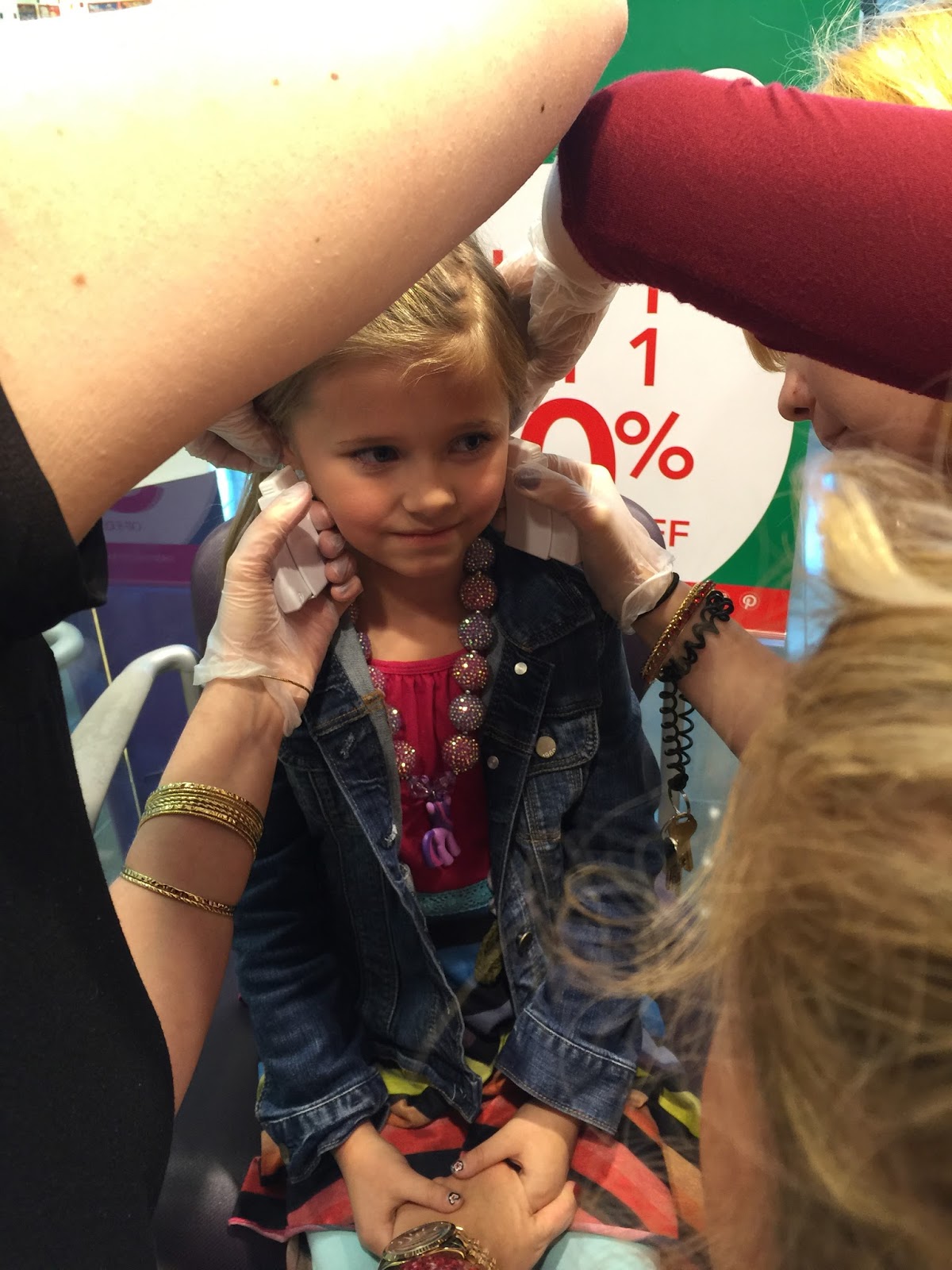 Speaking of growing up too fast…somehow, Kensington got her ears pierced on Saturday afternoon. I’m still not sure how this happened.