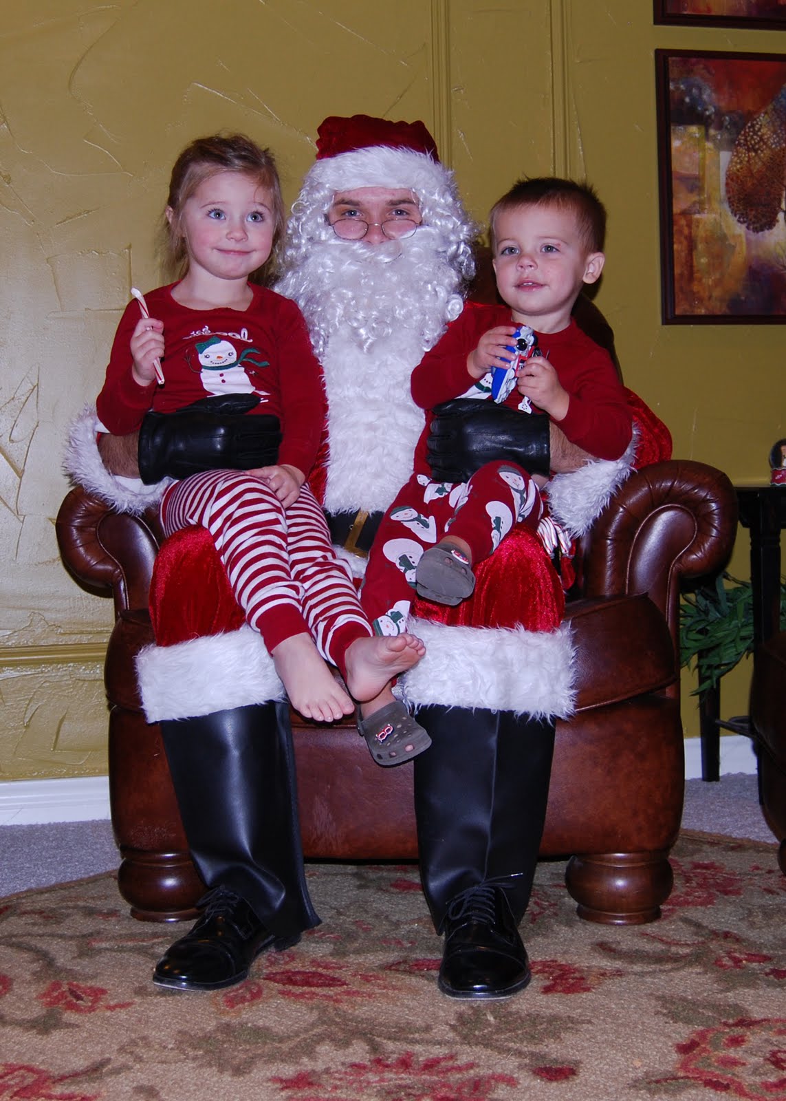 Ahhh! Christmas picture success! They were both so sweet sitting up in Santa’s lap. They told him how old they are, their names and each asked for a few things. They were really sweet. We always do individual pics of them with Santa and then I group them and put them here during the holidays…