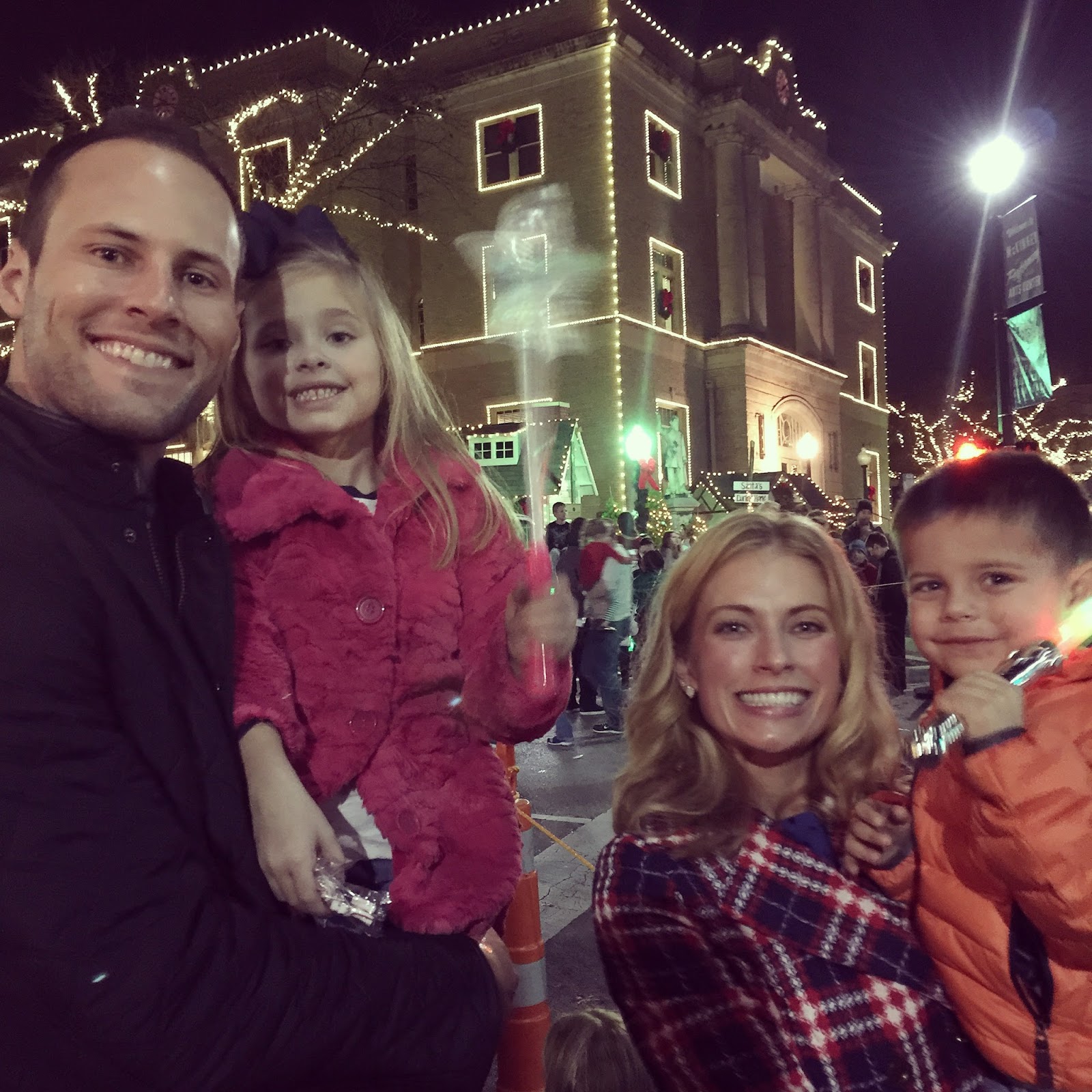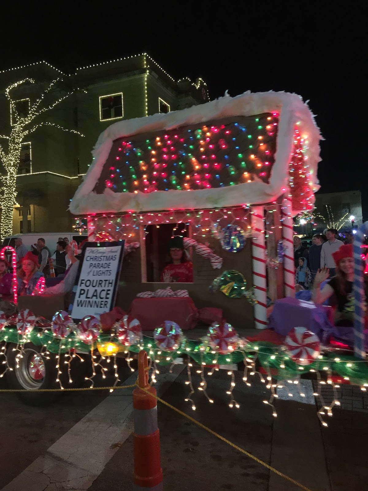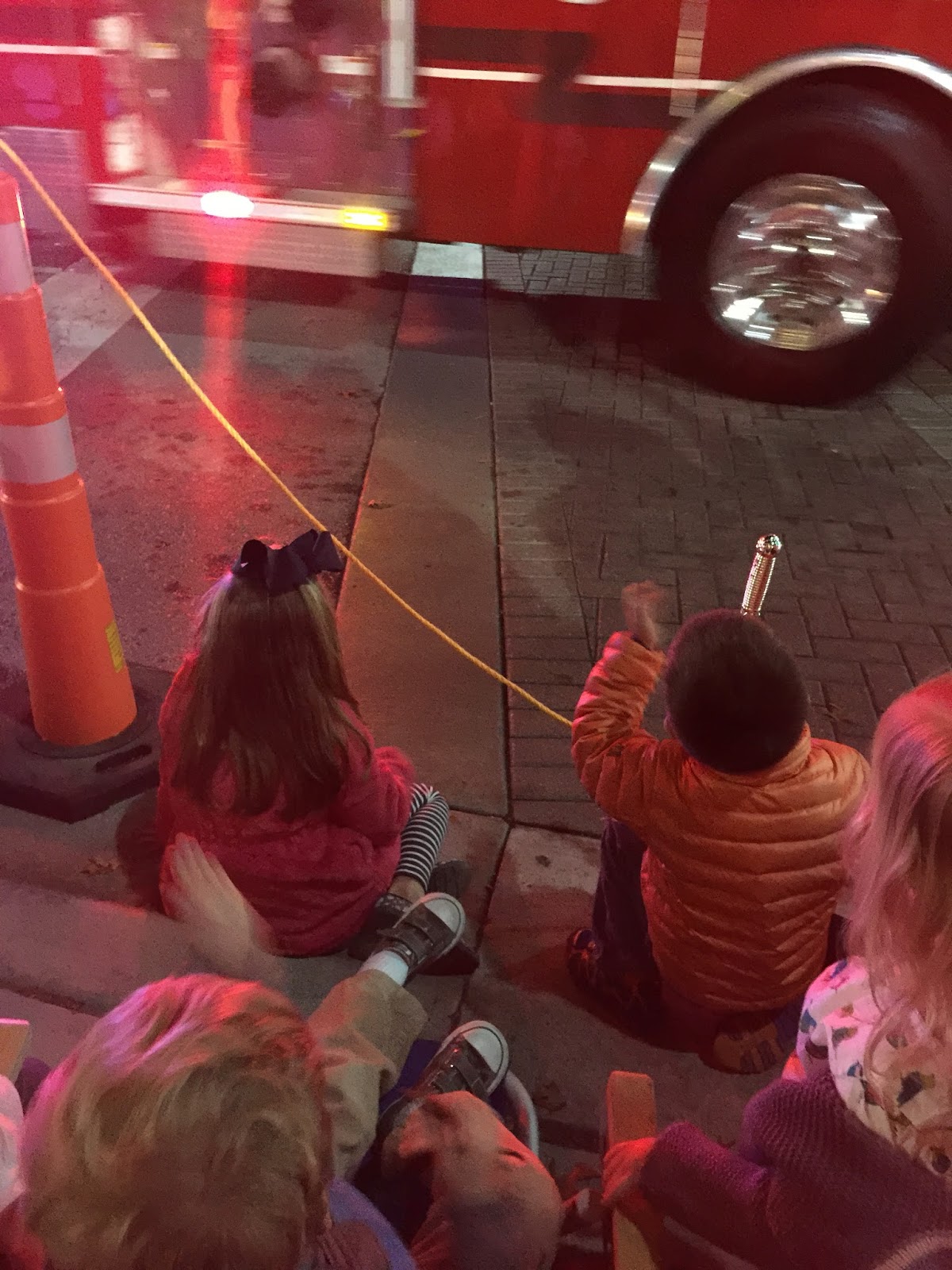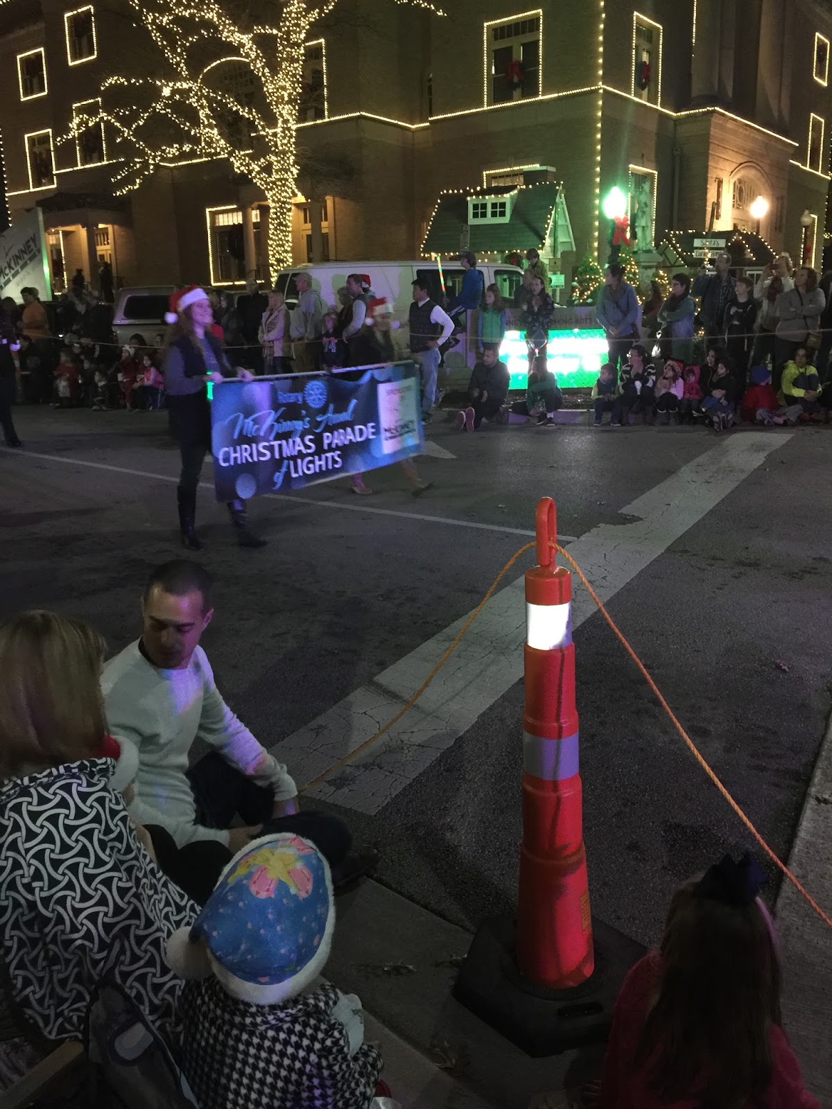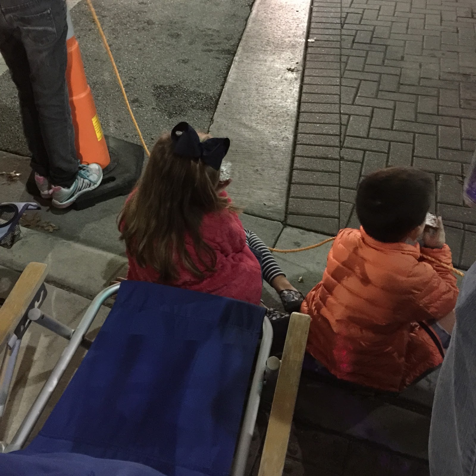 Later that night, we bundled up and headed to the McKinney Light Parade with my parents. My kids found a spot on the curb and enjoyed peppermint bark while they waited.