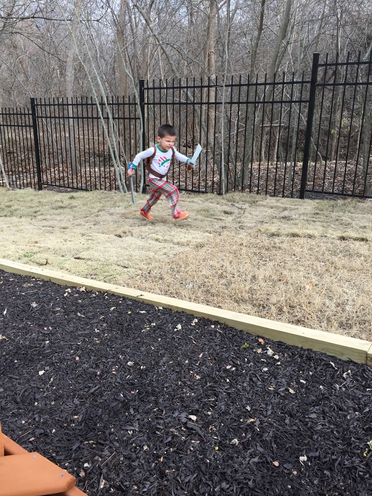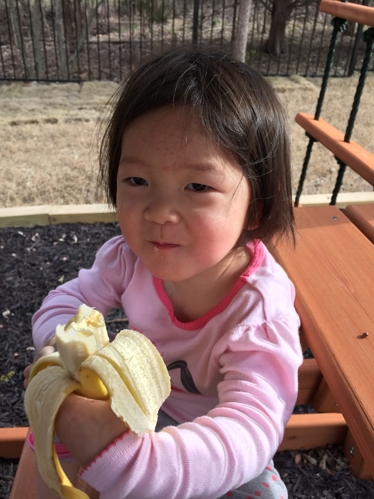 It’s been unseasonably warm out, so we enjoyed our playground in the backyard along with a banana.