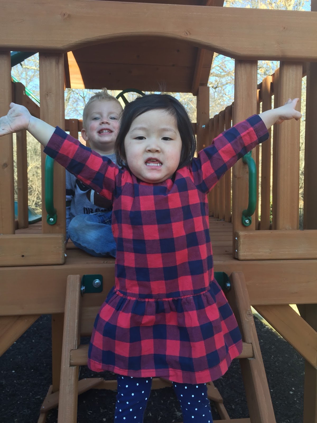 After school, we stopped by a playground on the way home and let the kids play for an hour. Smith’s favorite thing to do now is climb on top of the monkey bars.