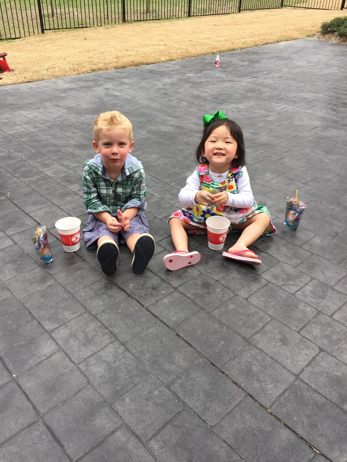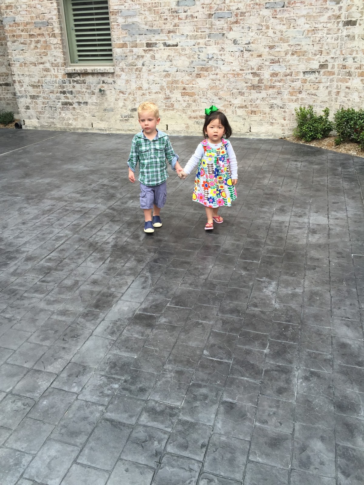 Bowen and Nixon came over to play while the girls were at ballet…these two came around the corner holding hands :).