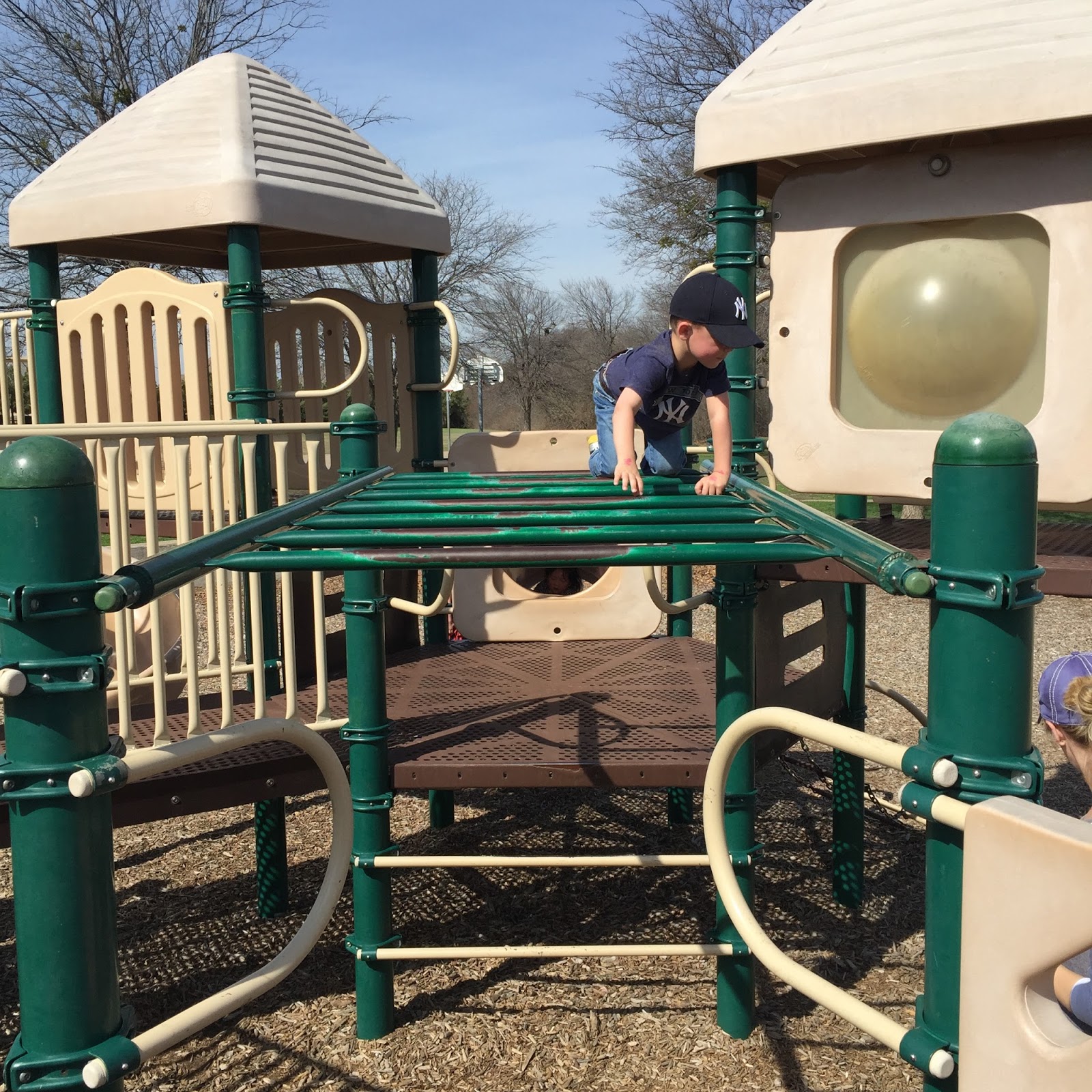 We played on the playground with the Slaughter kids before walking home. Climbing on top of the monkey bars is apparently a big deal when you’re this age…
