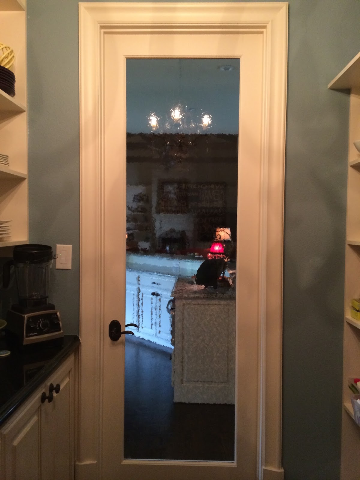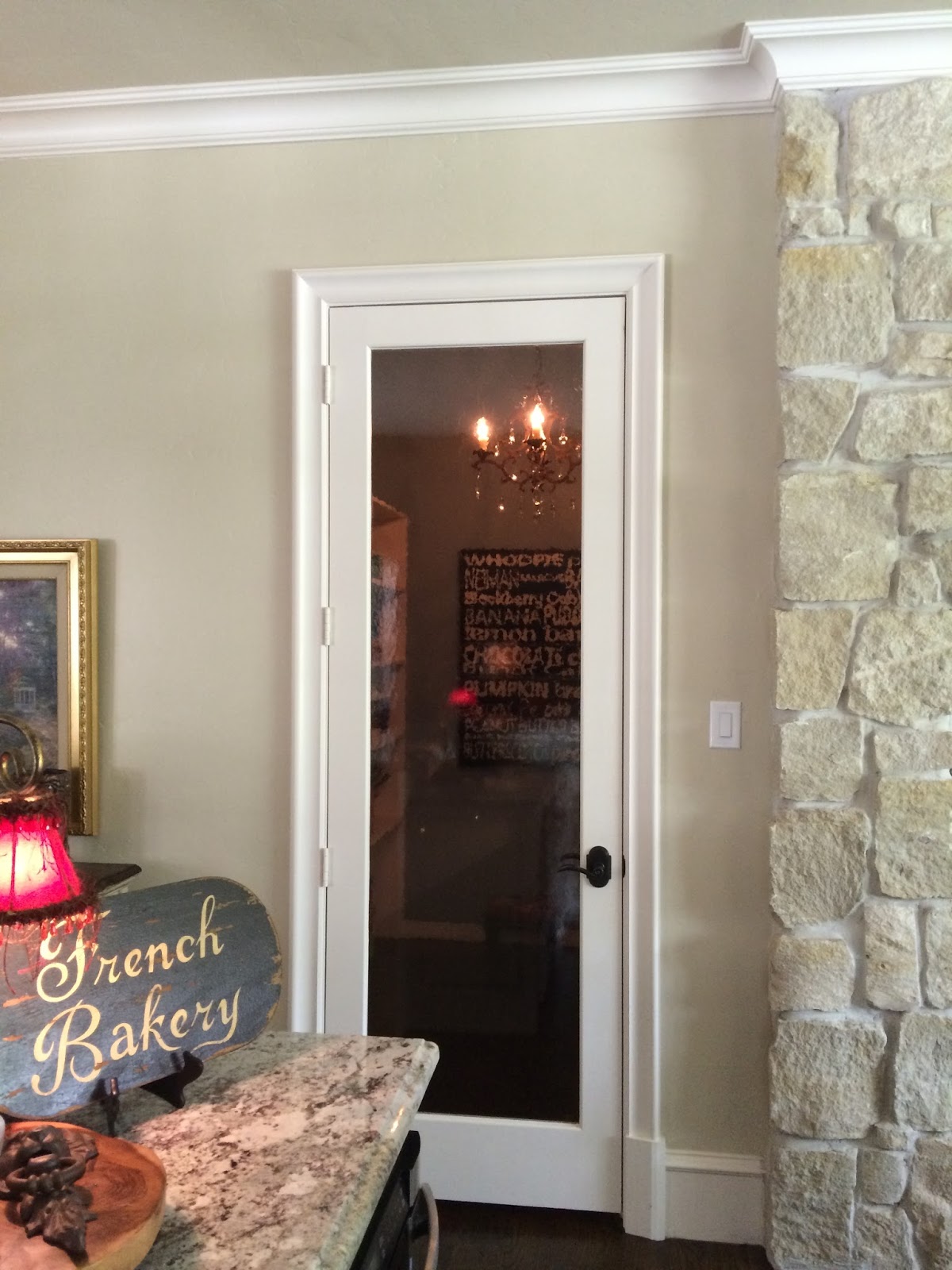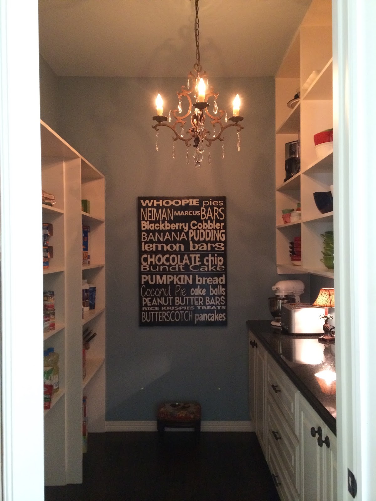 The pantry has and always will be my fav place in your house. The chandelier and the mottled glass in the door just make me happy!