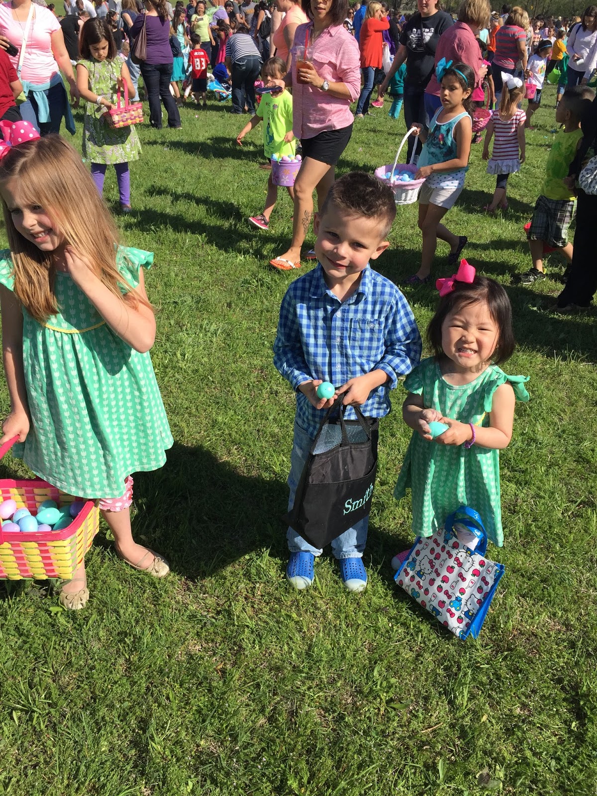 “Heyyyyyy!”…so, Kensington really enjoyed the socializing aspect to our church’s annual Easter Egg-stravaganza! On Saturday afternoon, we went to the festivities and enjoyed every minute. Love being with my girlies!