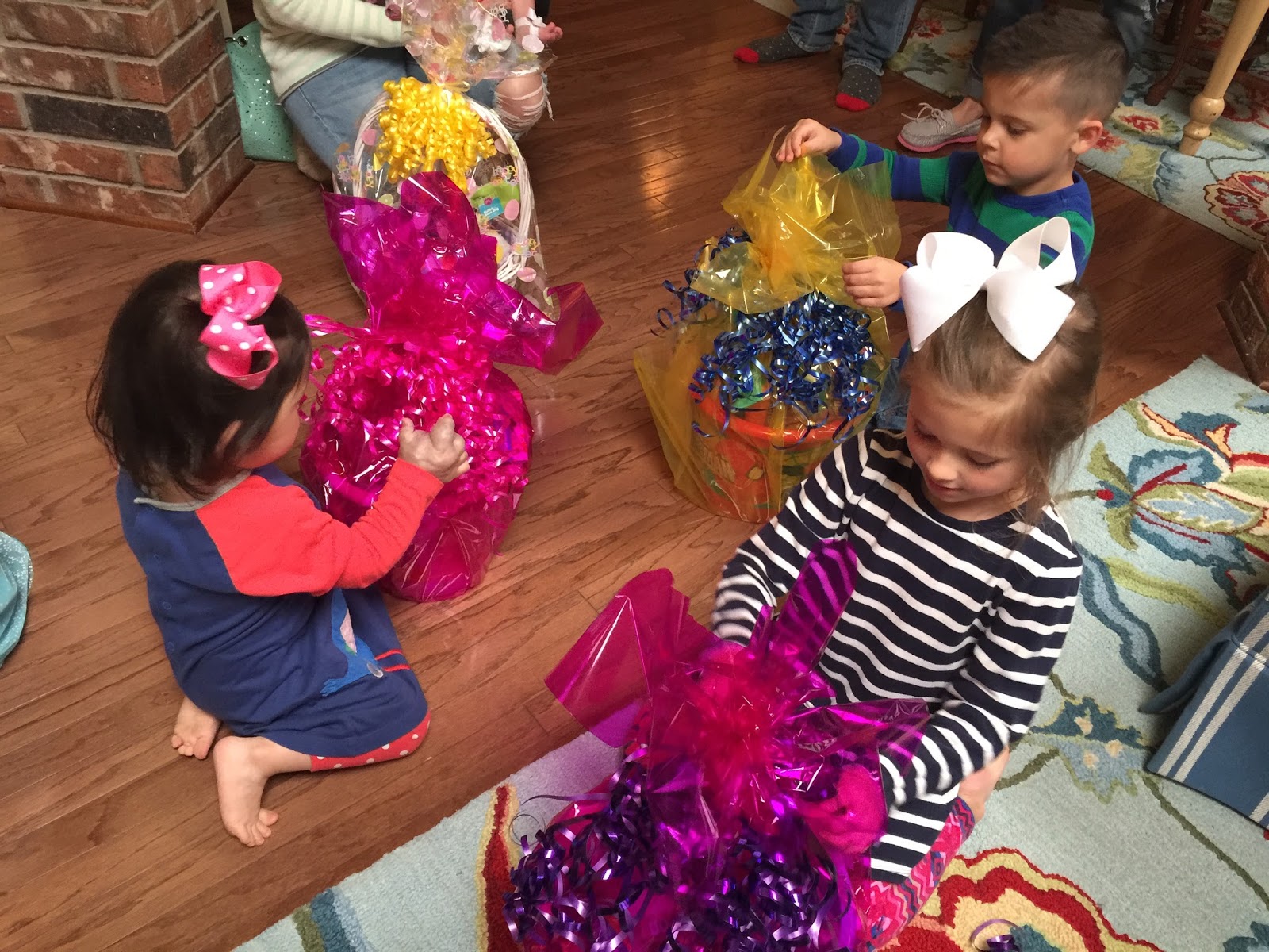 We went back to my aunt’s house and the kids opened their Easter baskets from Lovie and Papa Jay. They were filled with the best stuff. Lovie always does the best job with Easter baskets!