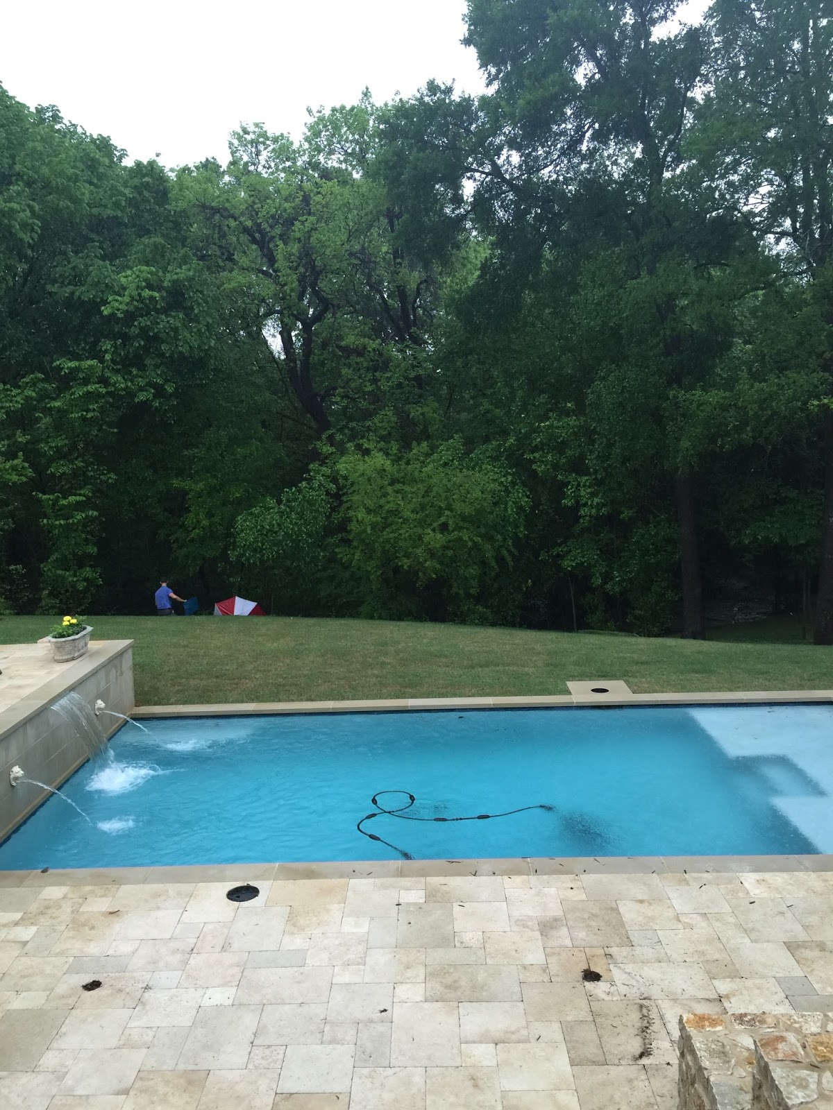 …Andrew in his business clothes with the pool equipment getting the neighbor’s chair unstuck from the creek. Sigh. I would have changed clothes first…but maybe that’s just me.