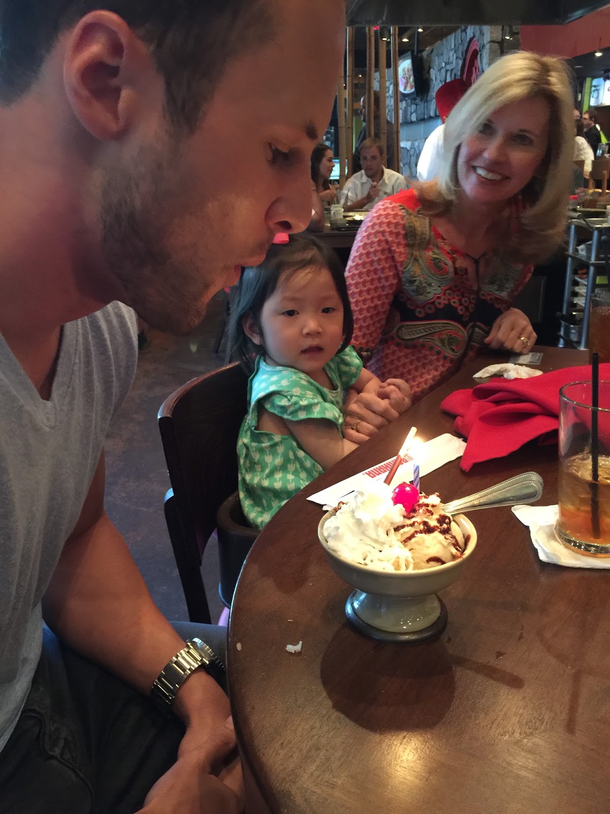 Since we were celebrating Andrew’s birthday, they brought him out a sundae and sang. Ashby was eyeing that cherry on top!