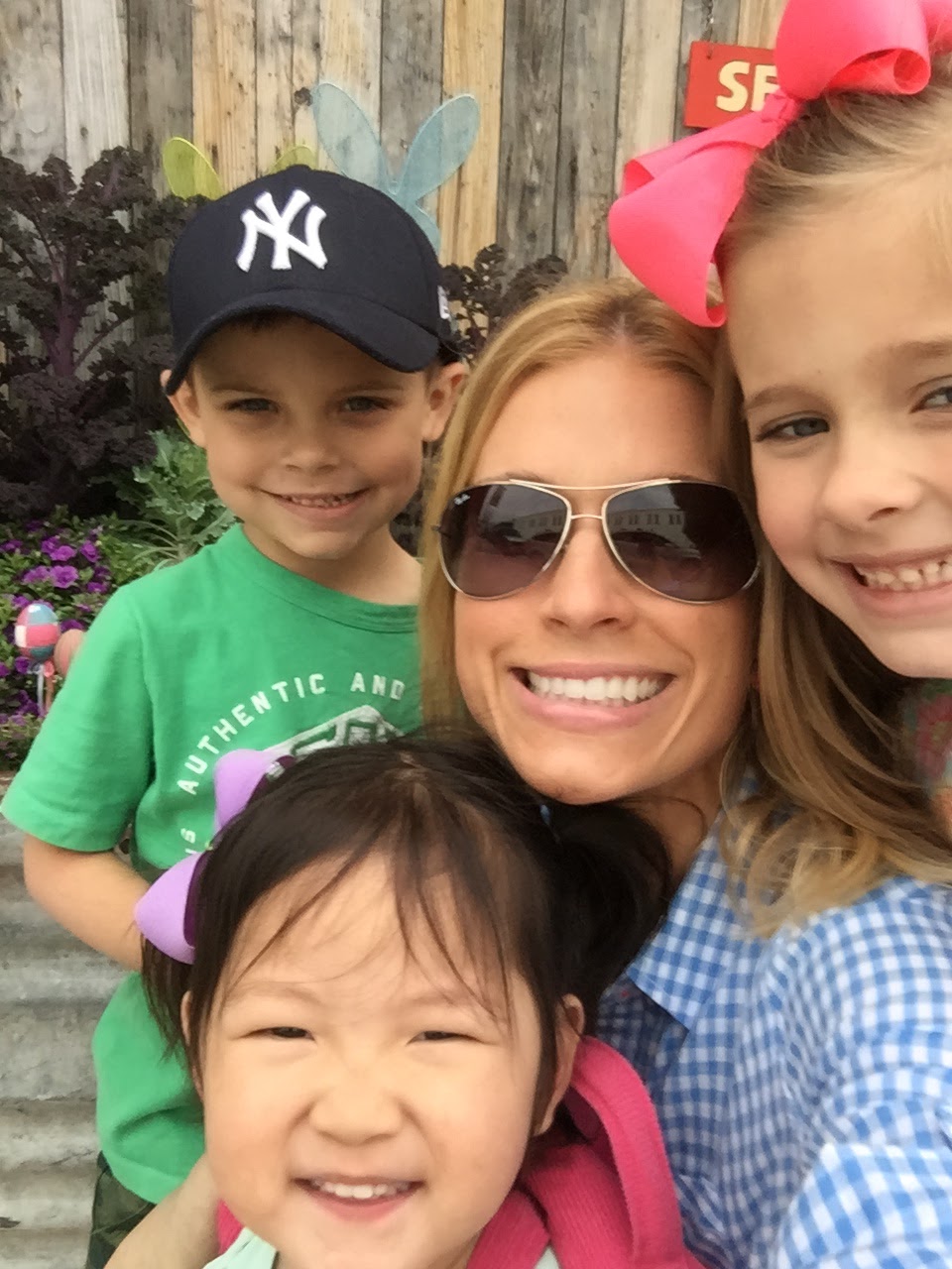 …on Good Friday, we enjoyed lunch with Andrew and the nice weather. There’s a “selfie spot” on our square, so the kids and I stopped on our way to meet him. I love walking around our town square with my three kiddos!