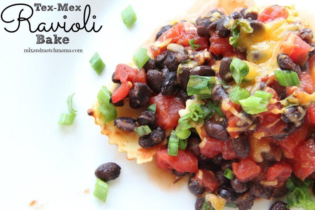 Meatless Monday: For a vegetarian supper, I’m suggesting my Tex-Mex Ravioli Bake! Cheese filled raviolis are the base and yummy Tex-Mex toppings finish things off. Yum-my!