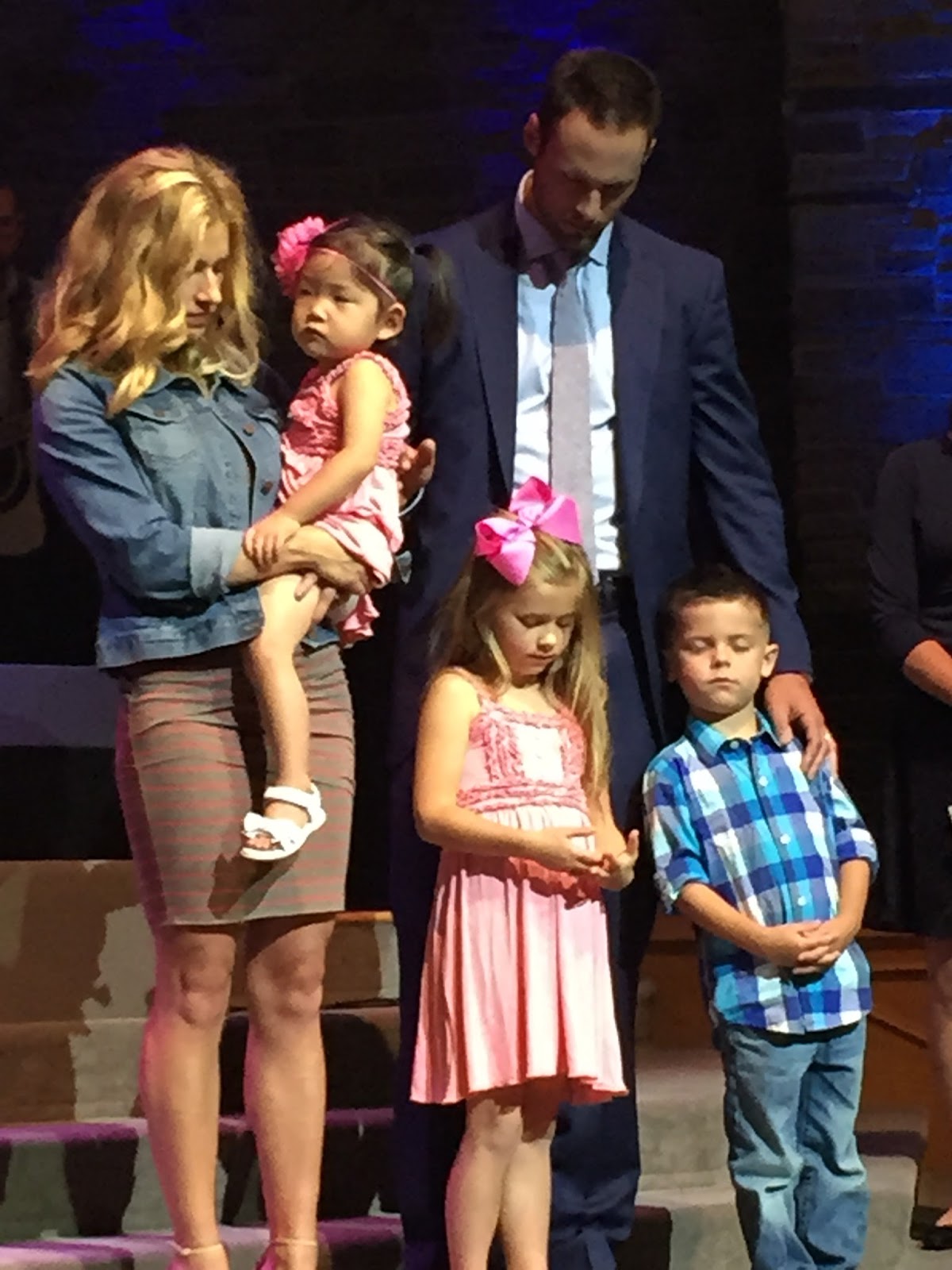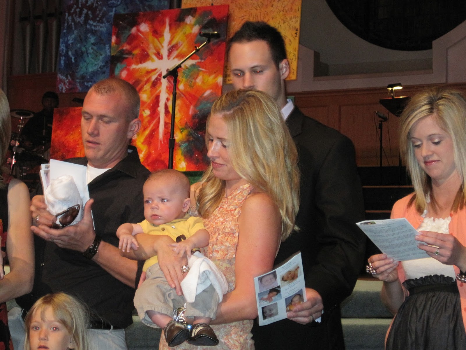 I peeked during the prayer and had to take a picture! Haha!!! I remember Nixon's baby dedication being the first time I had showered in a while too! 🙂