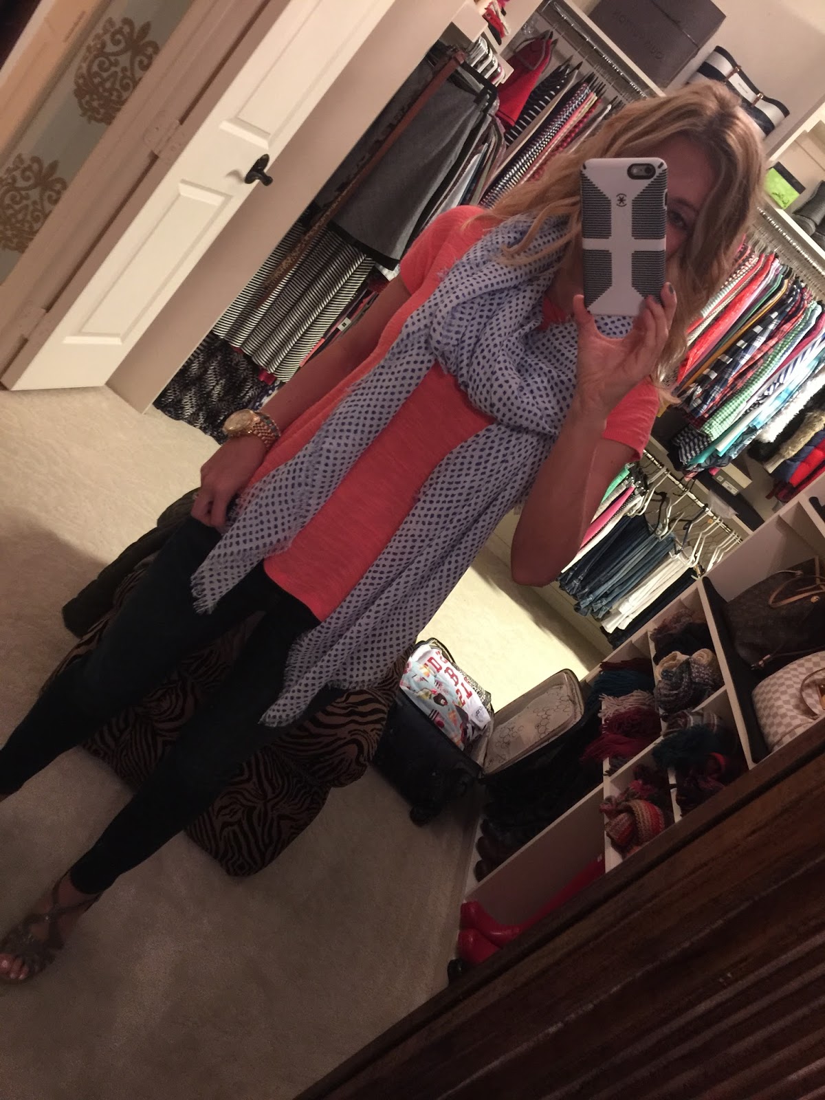I snapped this pic on my way out the door at 4:15 AM. I love my new scarf :). It’s pretty perfect for spring and summer, right?