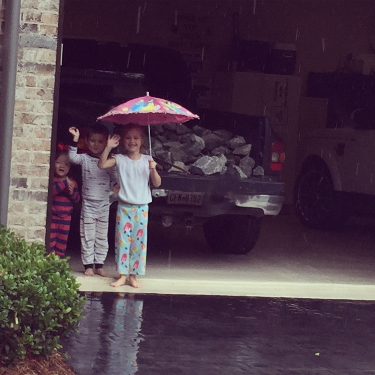 And then the next morning, I drove back into my driveway to find the most precious view in the world. Three sweet kiddos waiting for their mama…in the rain, of course ;).