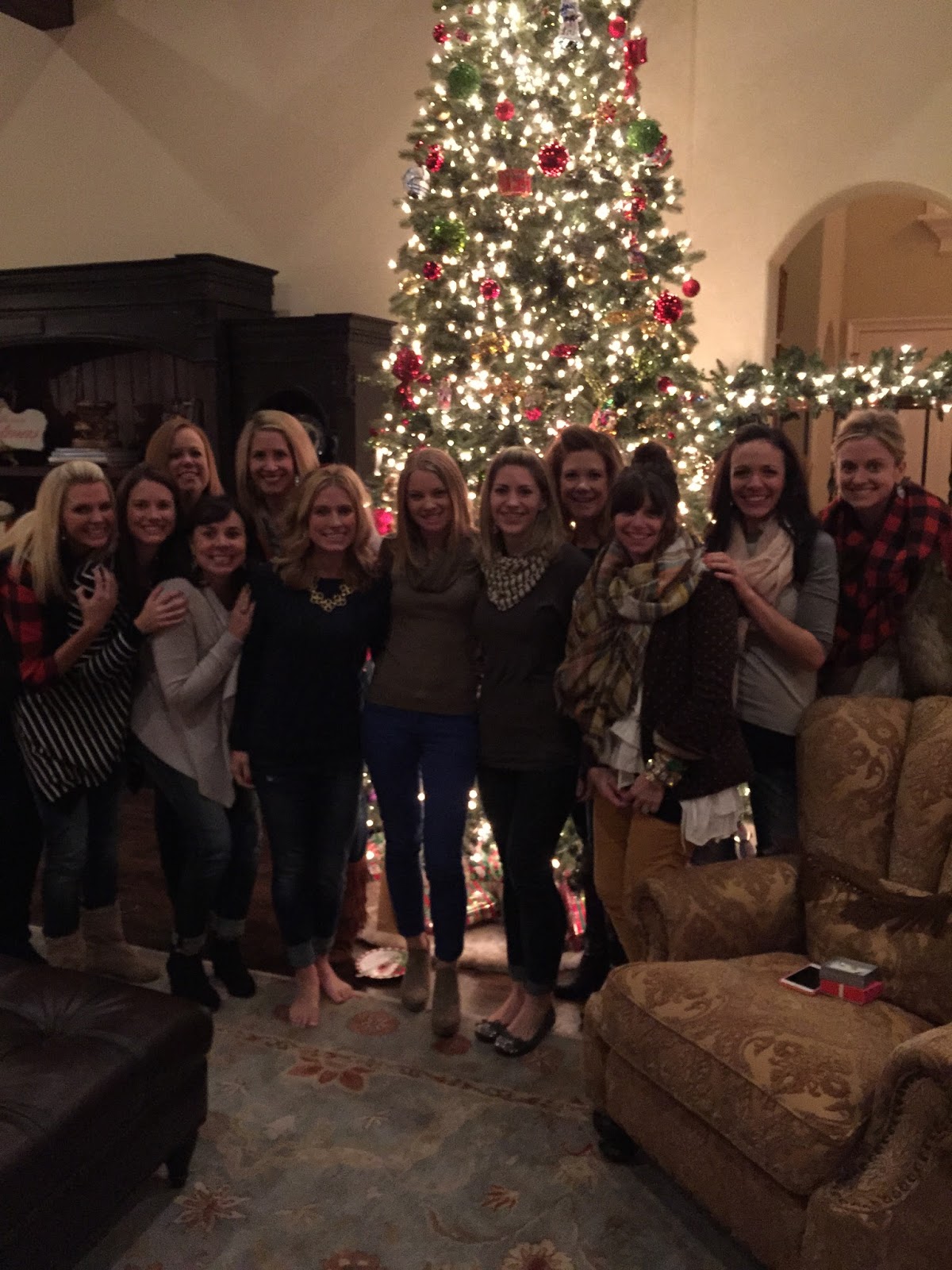 Each year, we have a different theme (appetizers, desserts, side dishes, casseroles), everyone turns in their recipe in advance so that a little book can be made for the party, we bring something to donate for a charitable cause (we’ve done the Angel Tree before and we donate to the food pantry), and then everyone brings their favorite dish and we all have a big feast. I provide the drinks, any additional accompanying food, the festive music and twinkle lights and we have the best time!