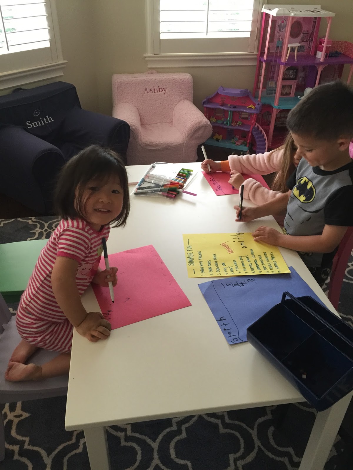 The kids started telling me things they wanted to do this summer. I wrote as they came up with ideas. This year, their ideas were really pretty simple!
