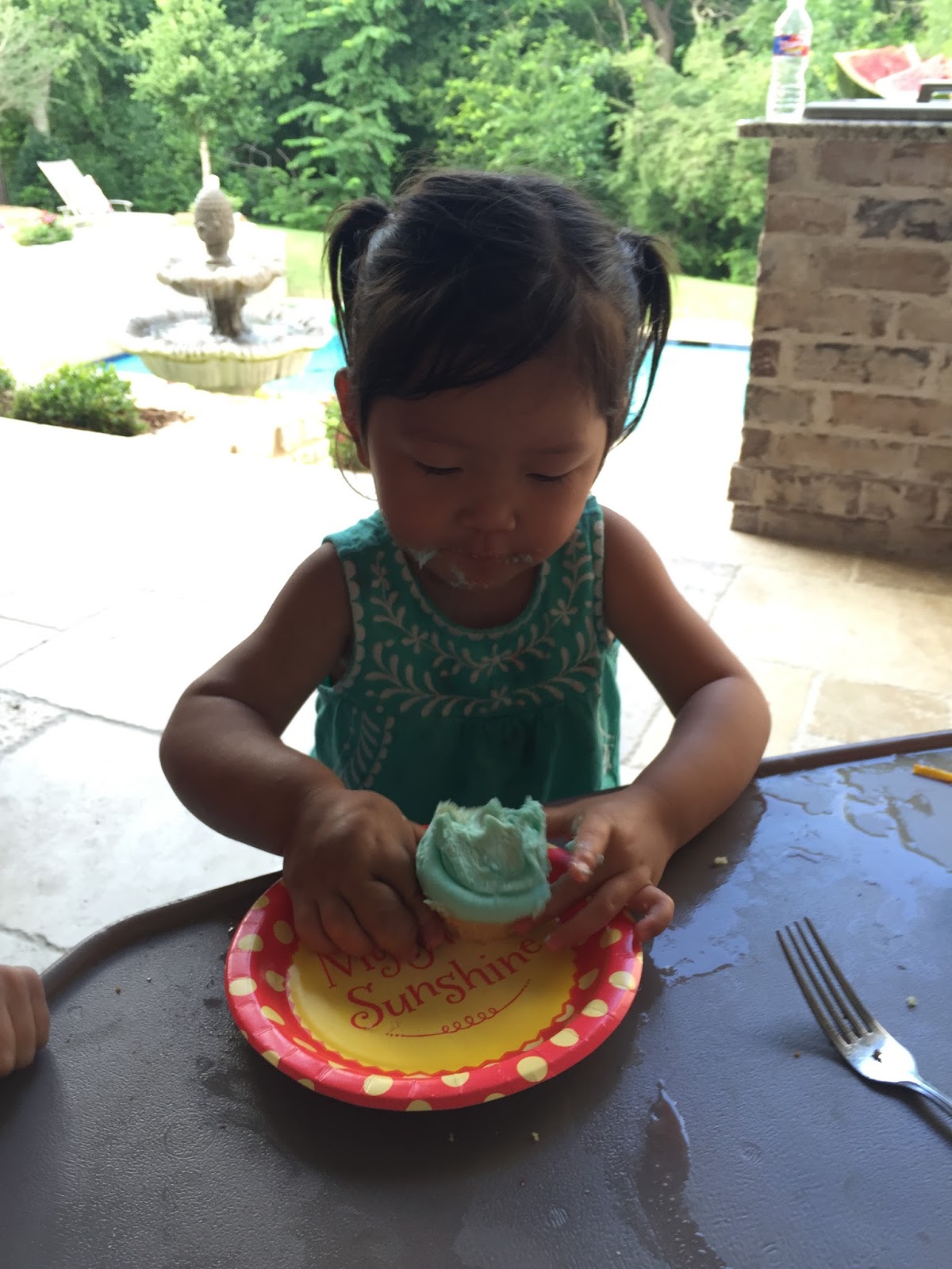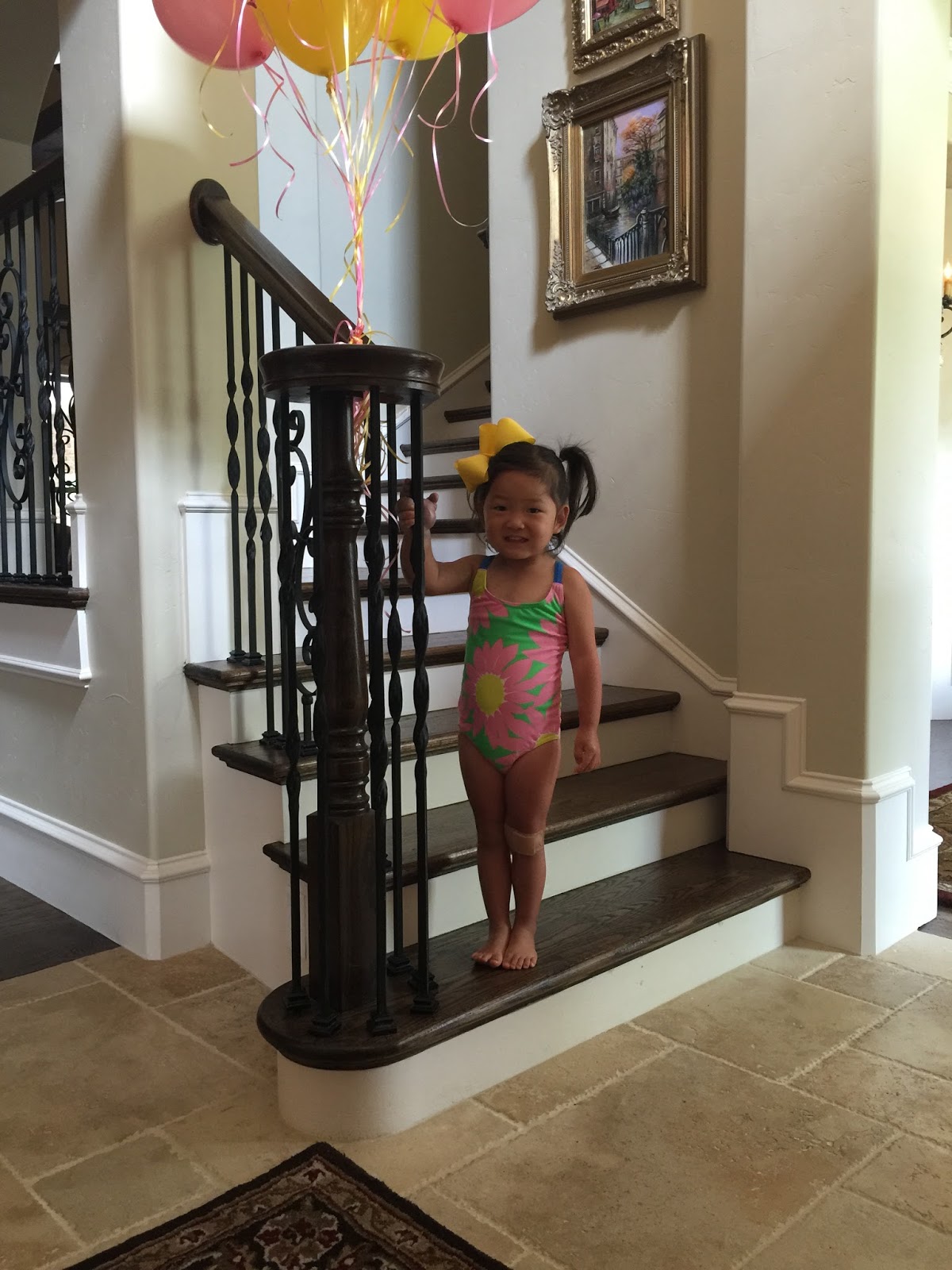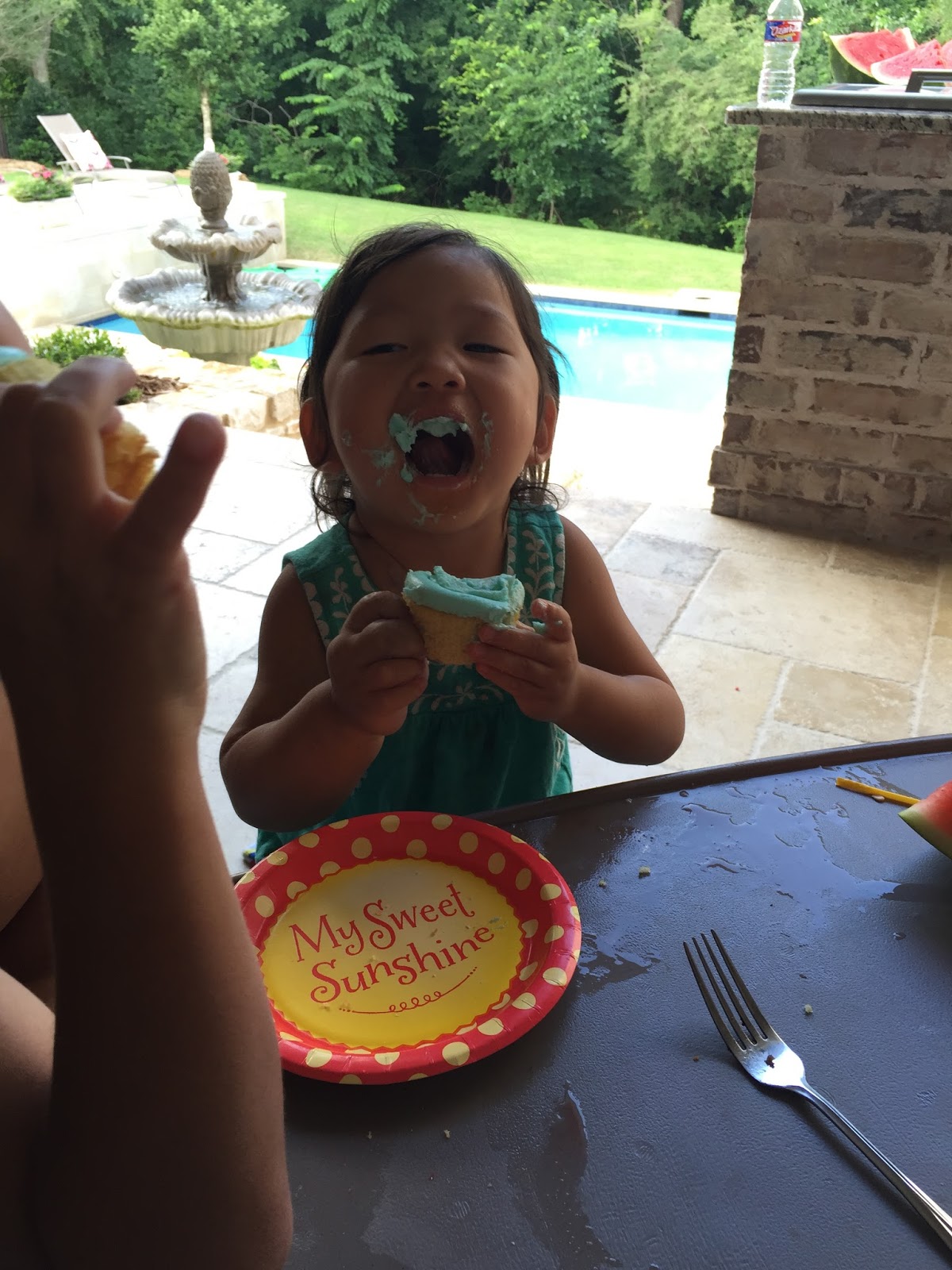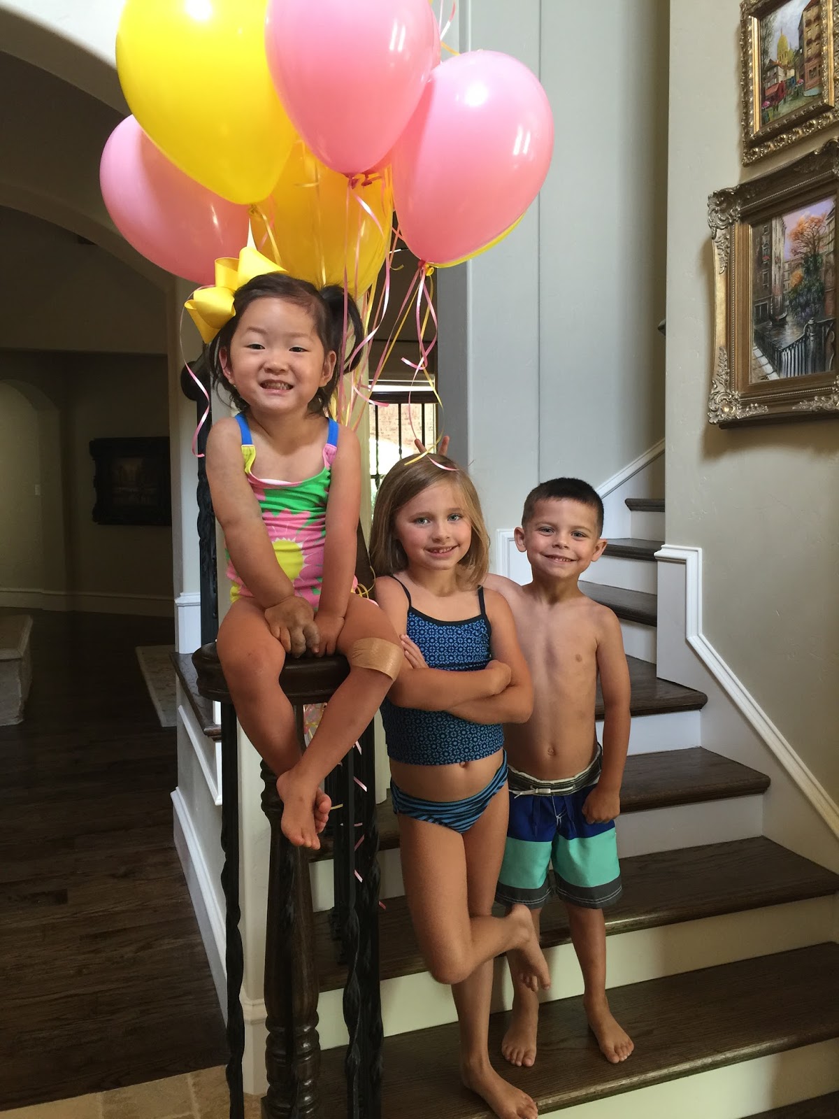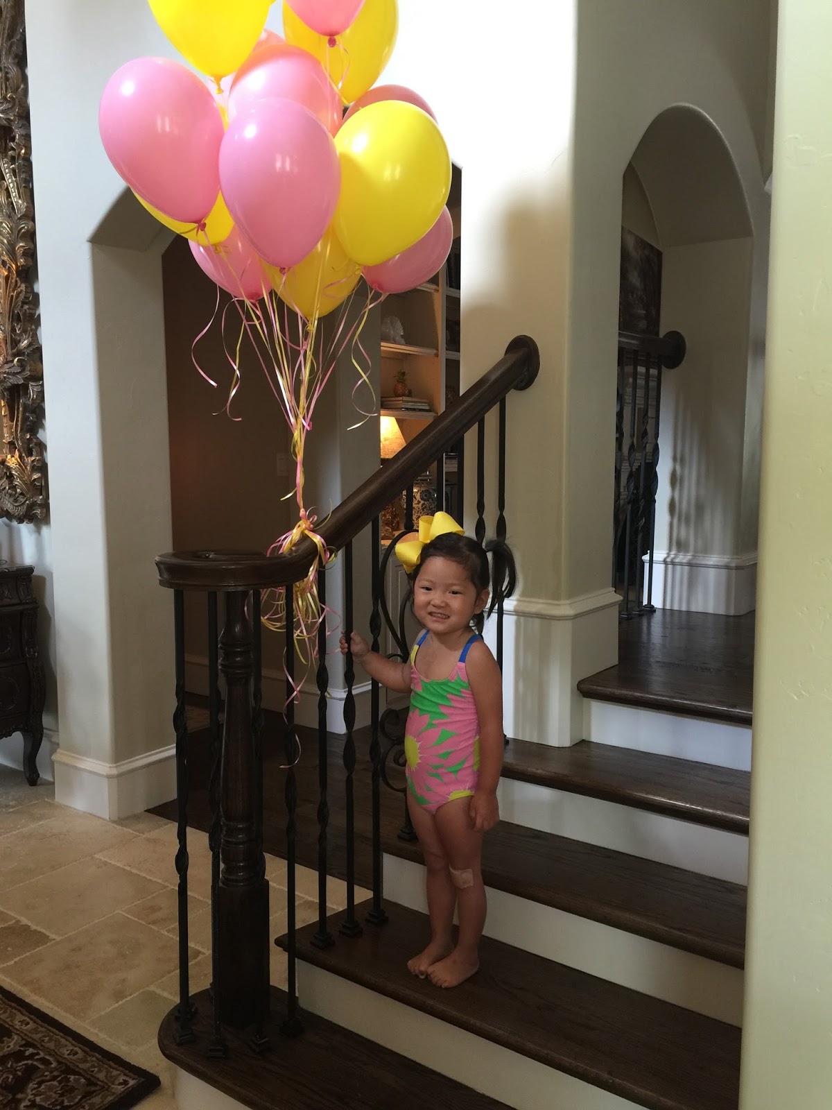 Happy Birthday, Ashby! What a fun party theme for a little girl who smiles sunbeams! 🙂 I love the pic of the 5 of you in the pool! So cute!