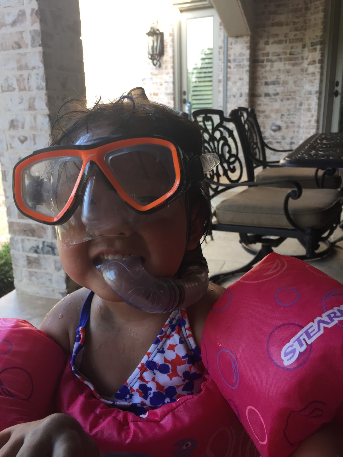 All of your posts usually make me smile at some time or another, but that picture today of miss Ashby in her snorkel gear made me laugh out loud!! She is PRECIOUS. Get that girl to Hawaii for some snorkel action!