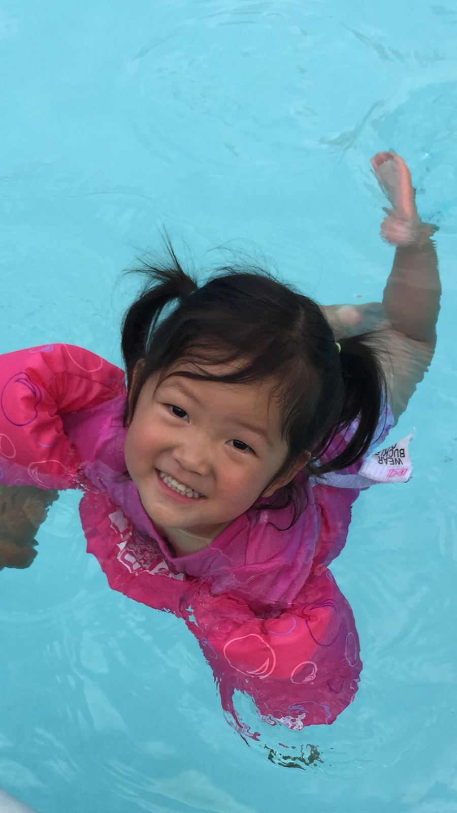 All smiles because she’s s-w-i-m-m-i-n-g!