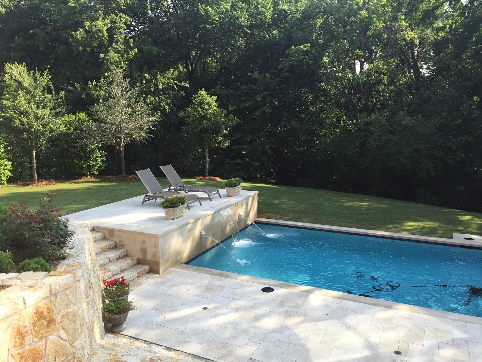 Beautiful! I love love love that deck area by the pool, with lounge chairs. Can I just come camp right there? ?