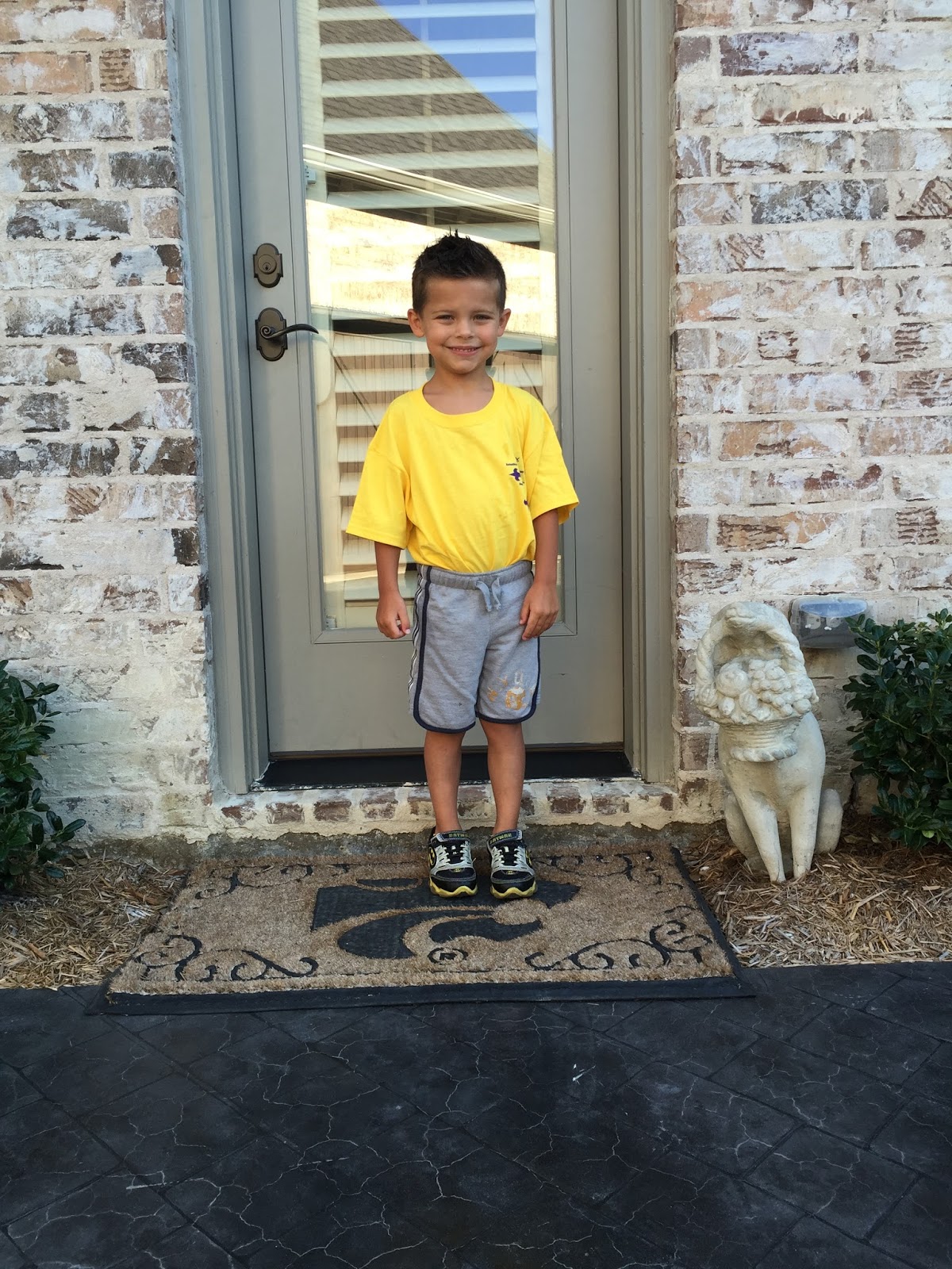 Headed to basketball camp for the morning. He insisted on tucking in his shirt like that :).