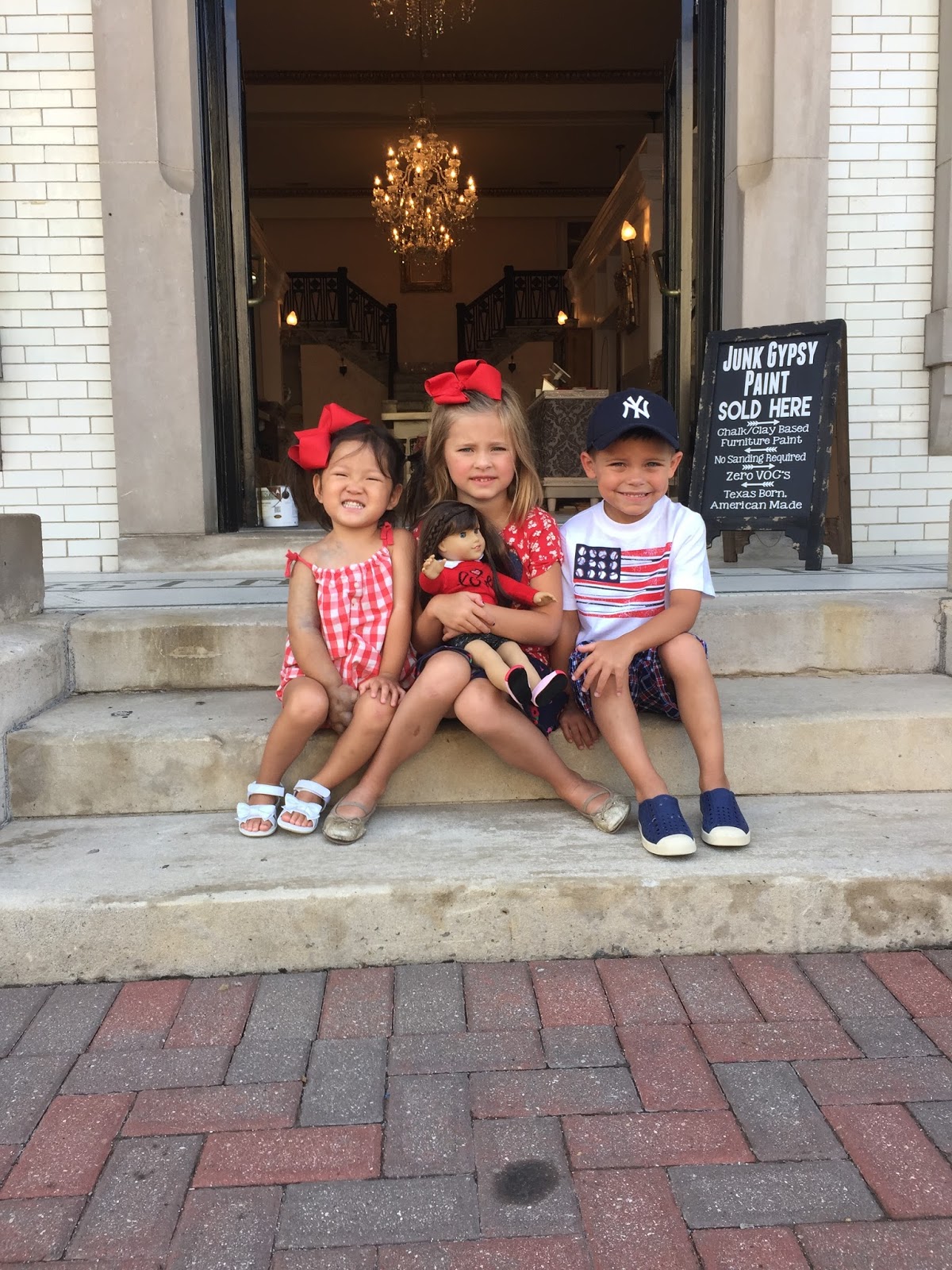 The Shull five (now six if we count the American Girl doll who is going everywhere with us) woke up early and headed to our historic town square for the annual parade. It was so much fun to be on the square with our friends. Everywhere you turned, you saw people you knew and loved.