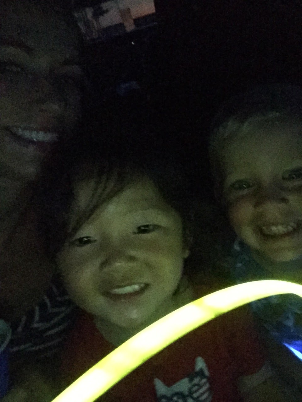 We sat in the dark out in a field with friends and watched the fireworks. Andrea brought glow sticks that kept us entertained.
