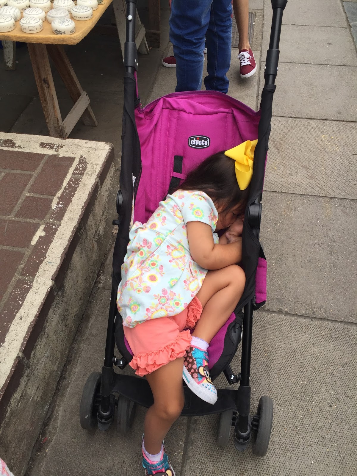 It's easier to move around with them! Sometimes, we'll only take one out and leave one in the hotel room (like if we're just stepping out for dinner). We've found that it's just a lot easier to maneuver them through airports, subways, busy streets, inside taxis, in museums, on elevators and through stores than our big one. Plus, if we go into some place and want to split up a minute, it's easy too!