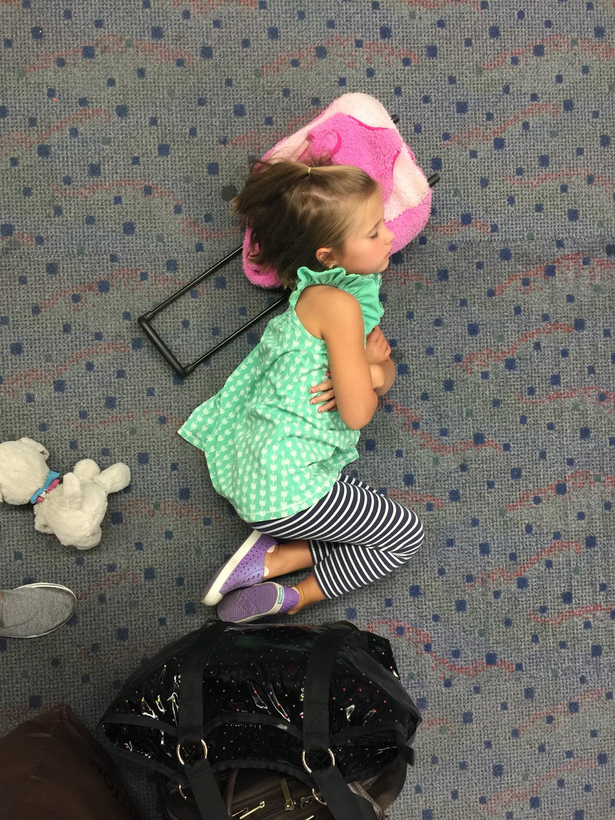 …is sound asleep on the floor. When she woke up in her bed the next morning she told me the last thing she remembered was going to sleep on the airport floor :). She slept the entire time we carried her to the car, loaded her up and drove the 45 minutes home.
