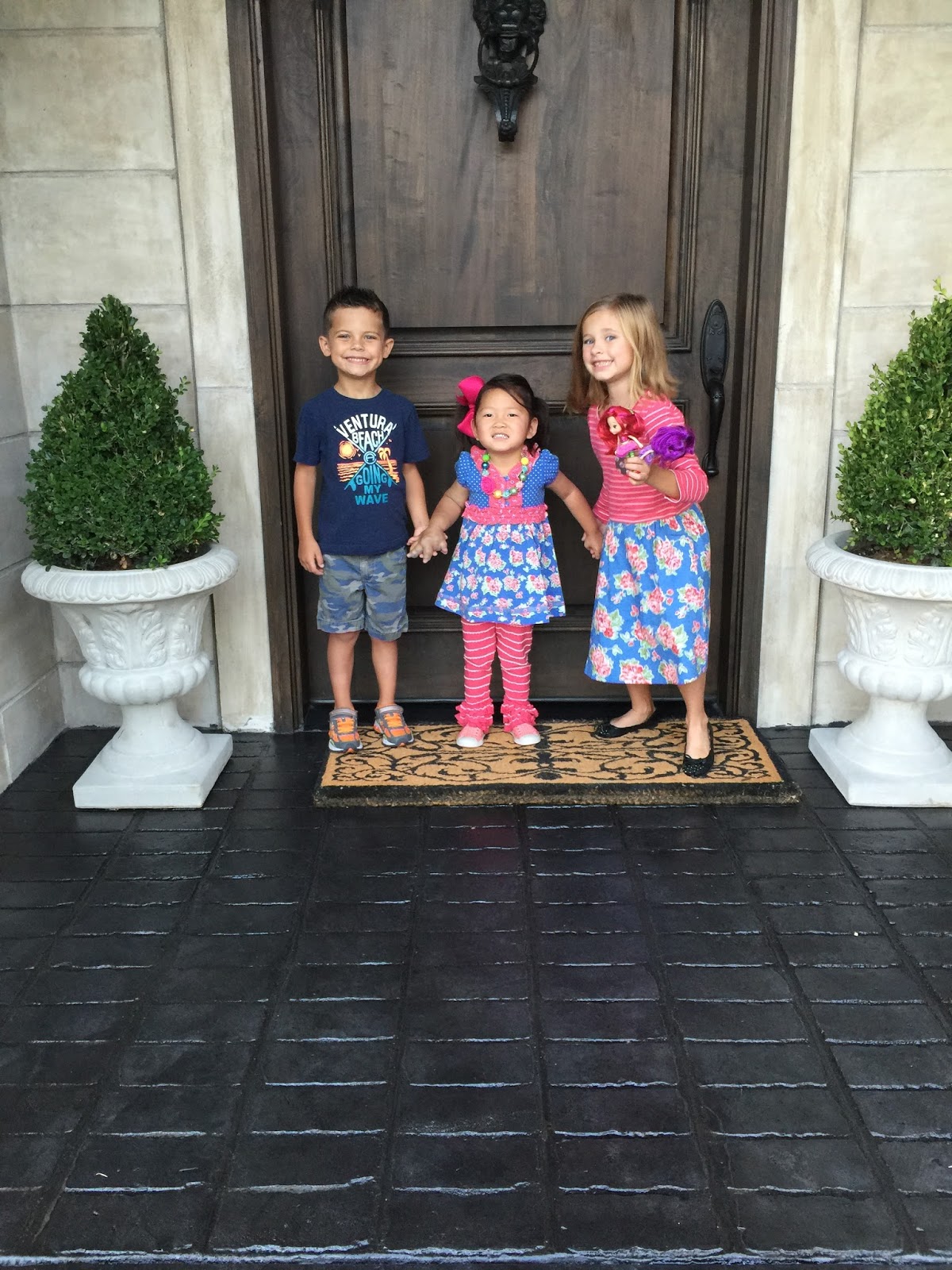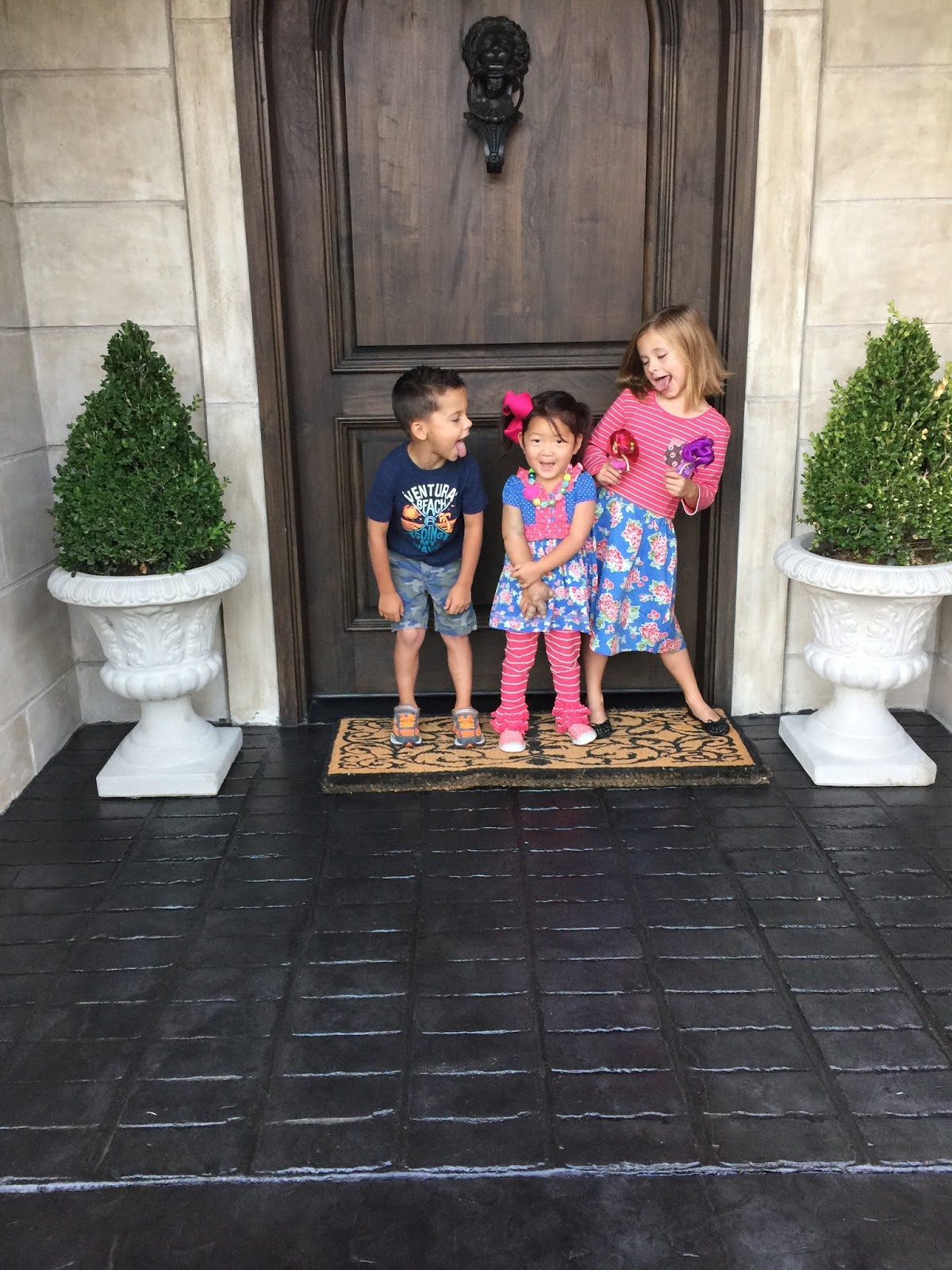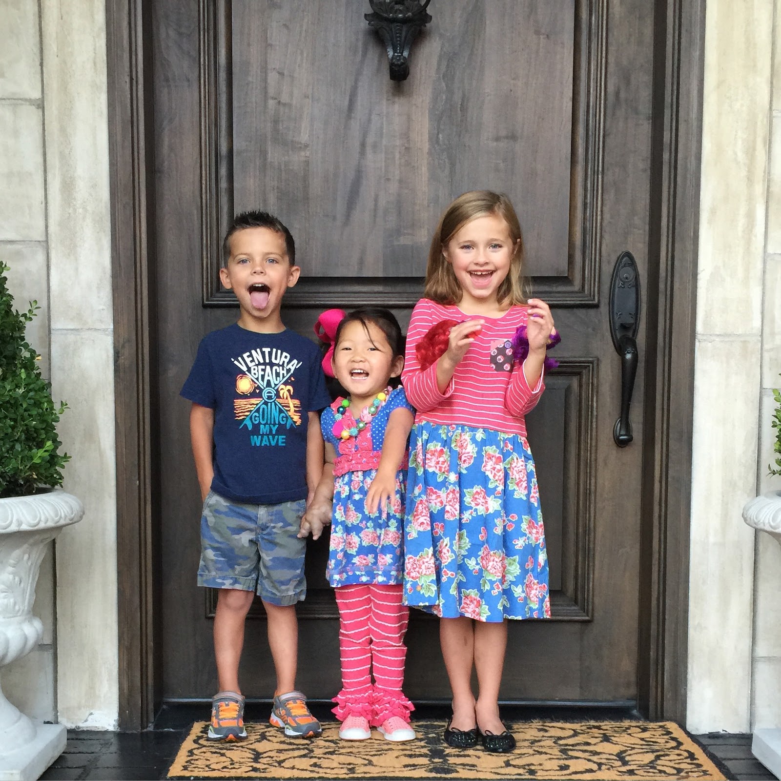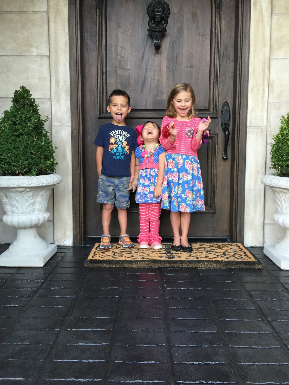 …Smith’s kindergarten class came down with a bad case of the stomach bug and so we were home-bound for 2 days. When it was finally time to re-enter the real world, we were all so ecstatic! We took a picture to commemorate our enthusiasm…and just so you know…sometimes, I take cute pics of my kids the first time and then other times, it looks like this…