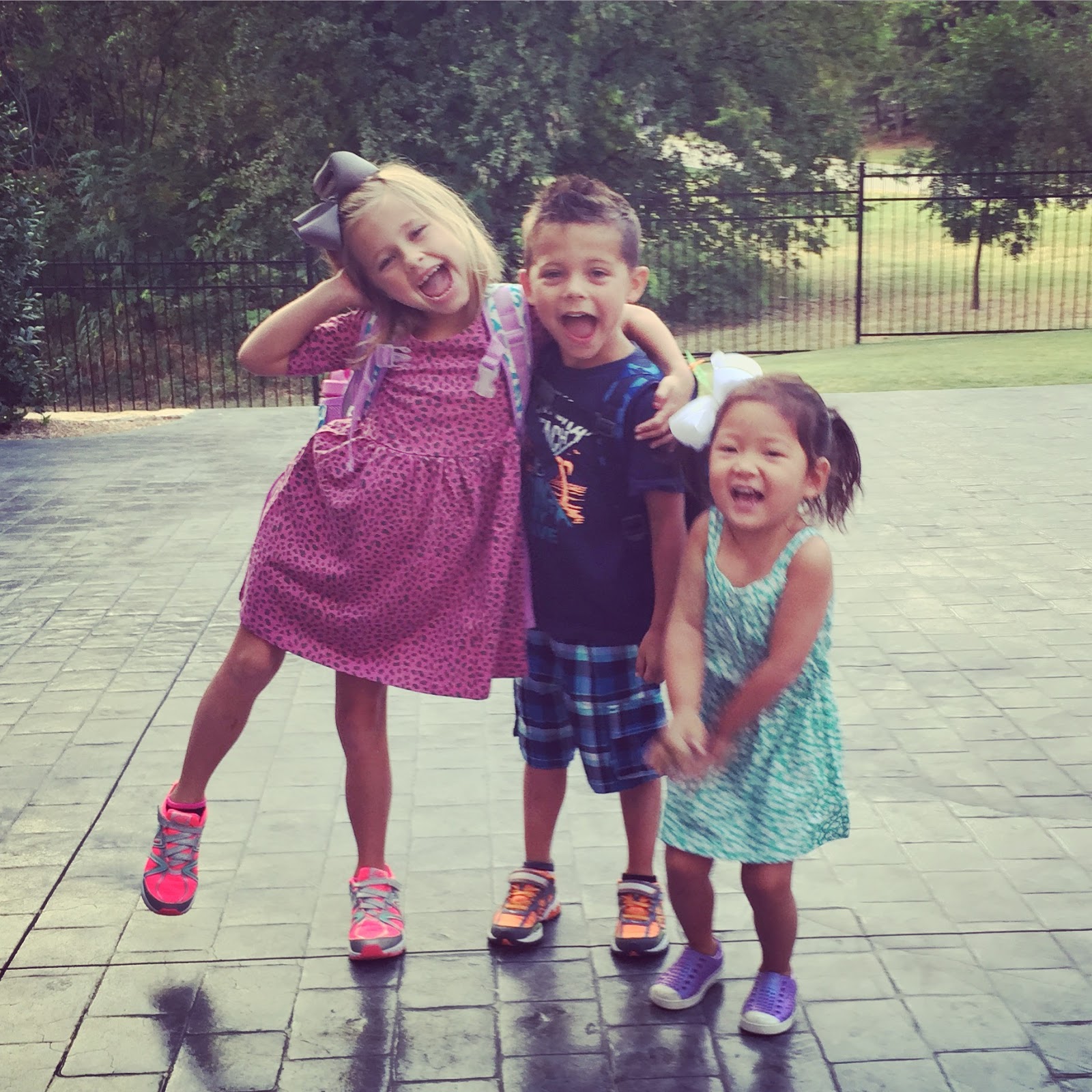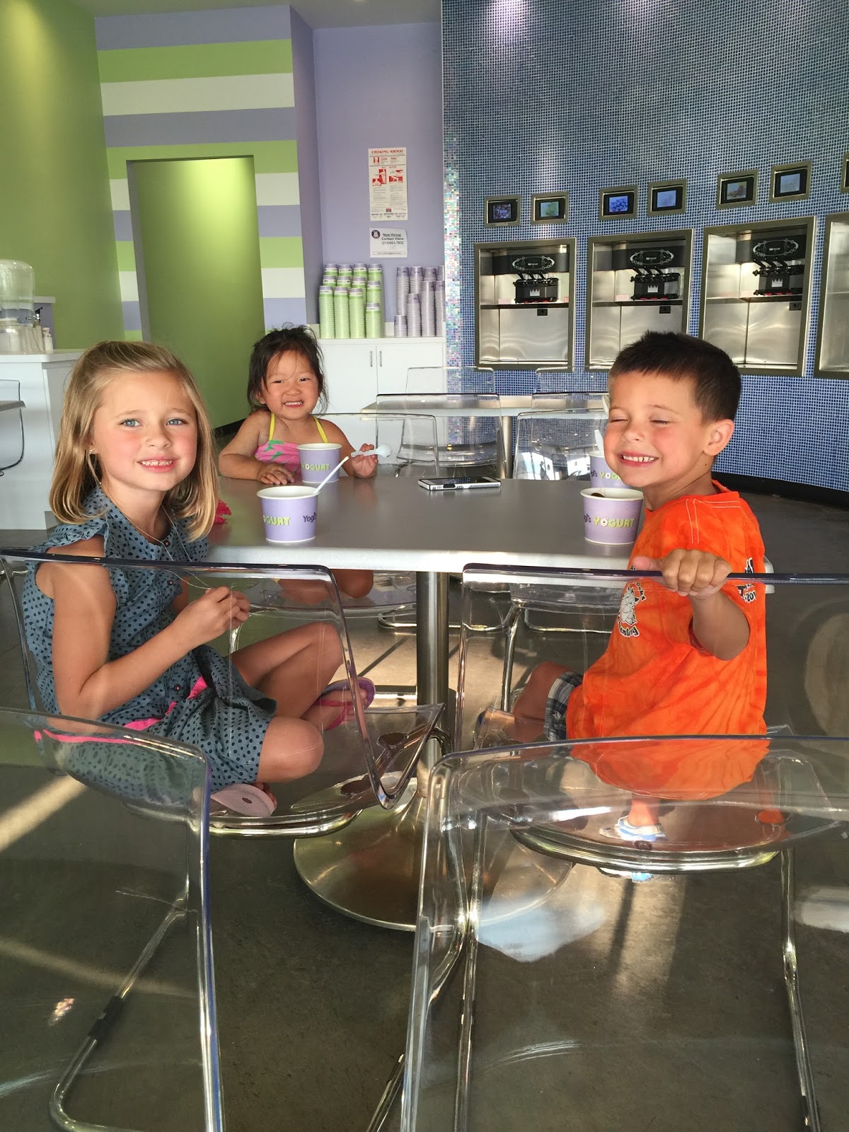 Two out of three have their eyes open! I’ll take that :). We treated the kiddos to frozen yogurt the other night after dinner. Love these three.