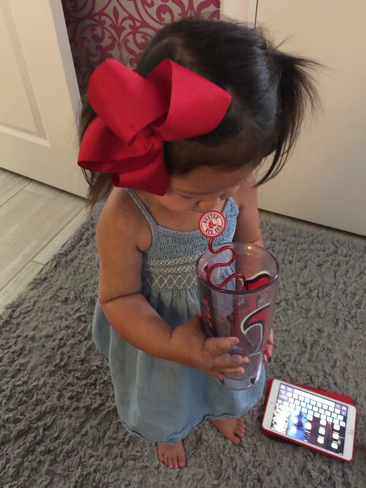 Ashby walked into my office the other day with her big red bow, drinking out of my Red Sox cup with a Red Sox straw and I thought…yup, that’s my girl.