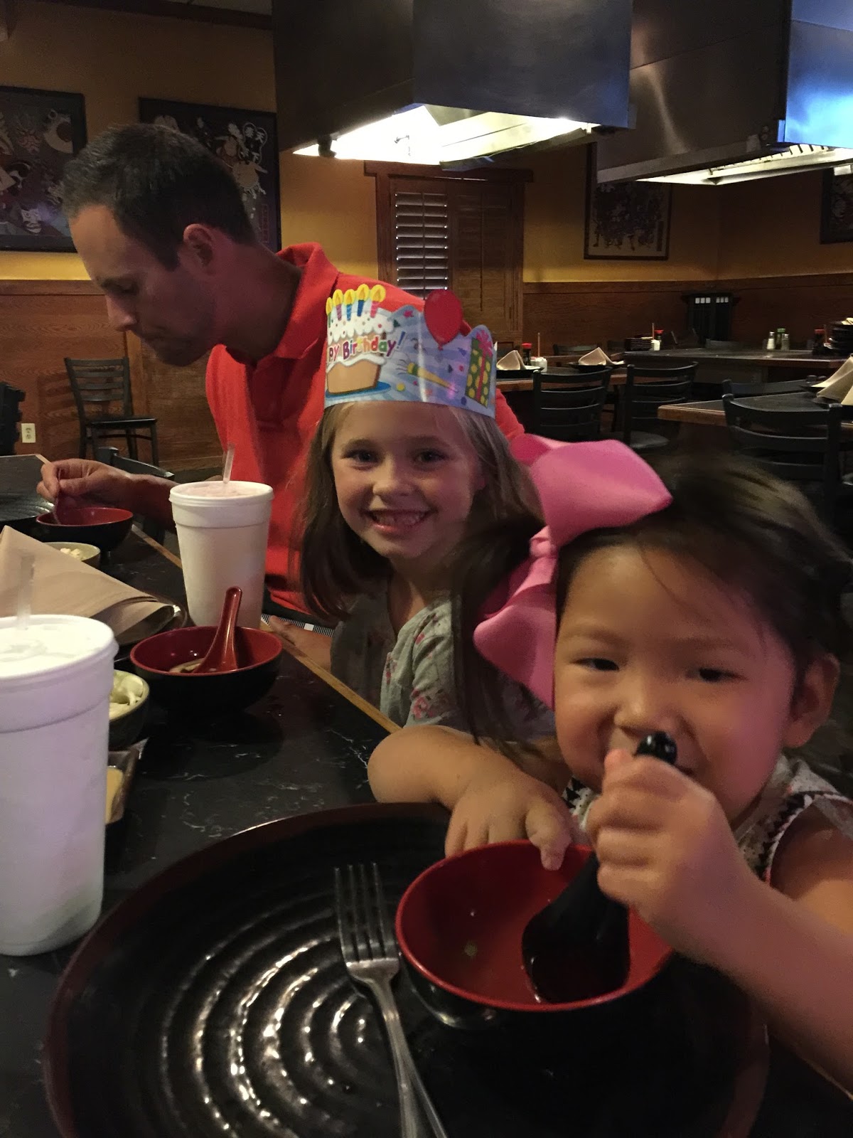 For lunch, we had Chinese food per Kensington’s request and for dinner, we had Japanese. She wore her birthday crown from school all day.