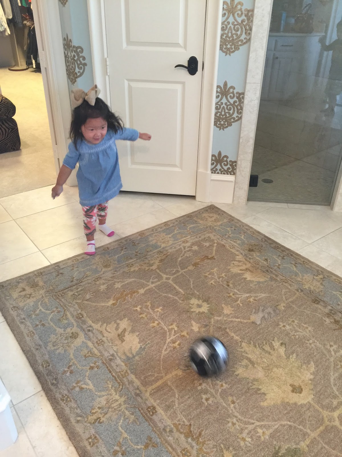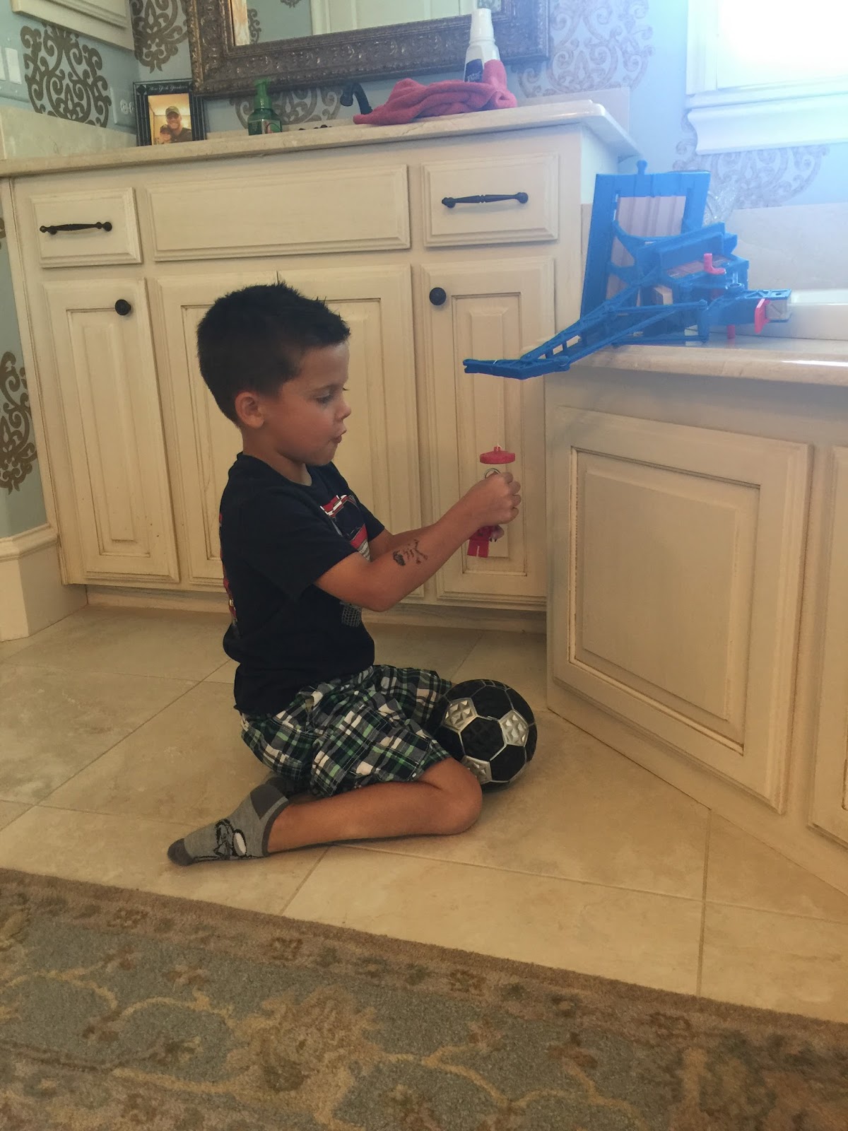 Apparently, our master bath is the perfect place to play. Smith brings toys in there all the time…