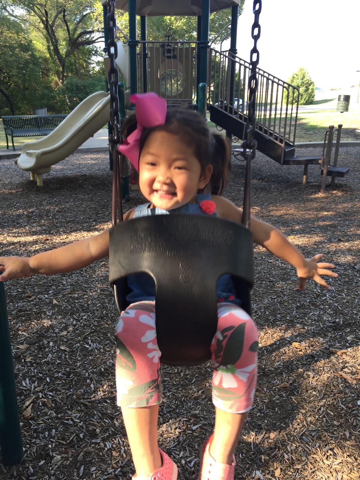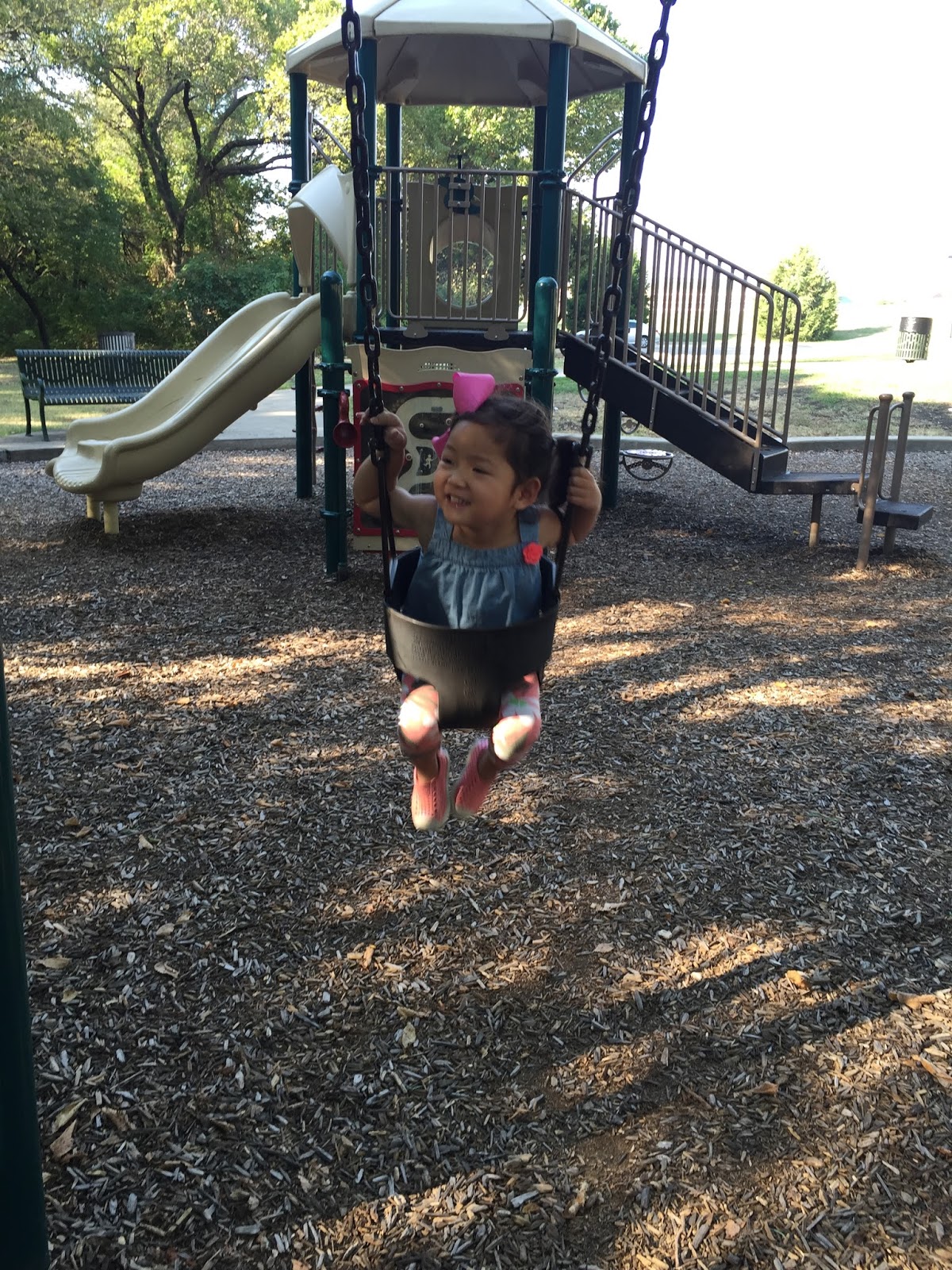 On Friday mornings, I’ve been taking her to the park after we volunteer at school. She loves it!