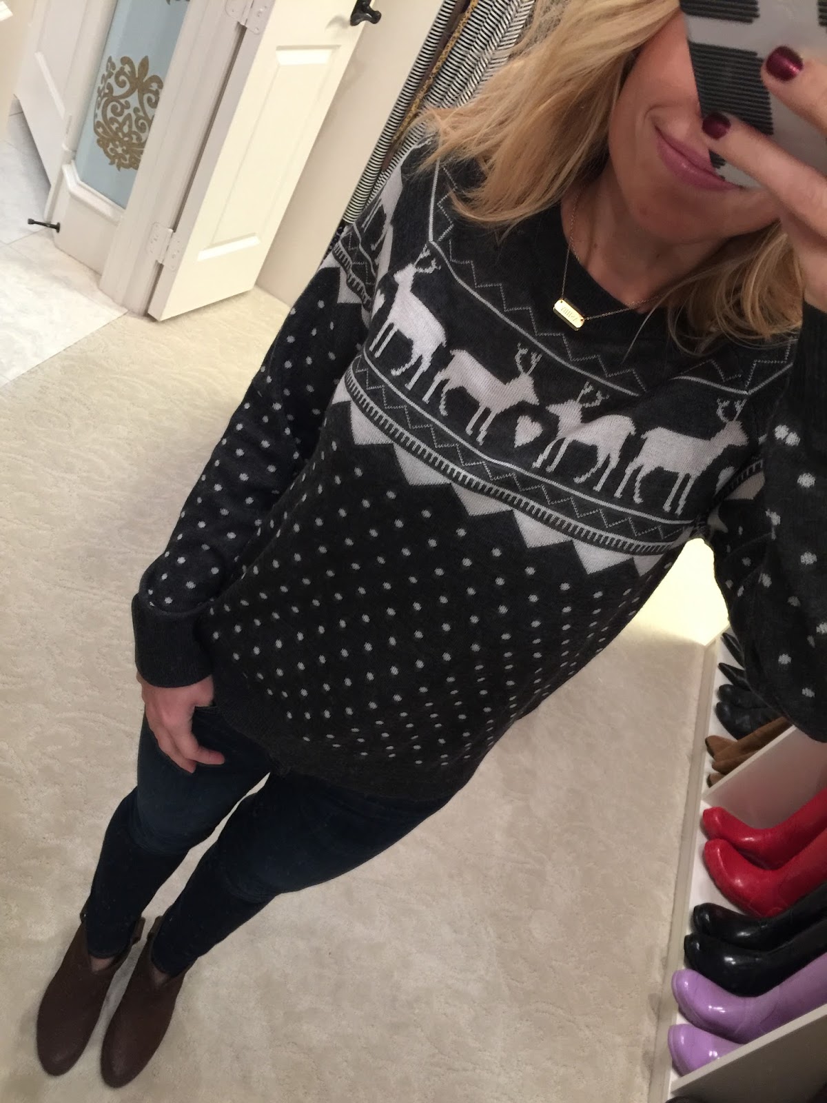 I love your sweater. I instantly thought of Christmas Vacation & Ellen Griswold. Look it up…you nailed it!