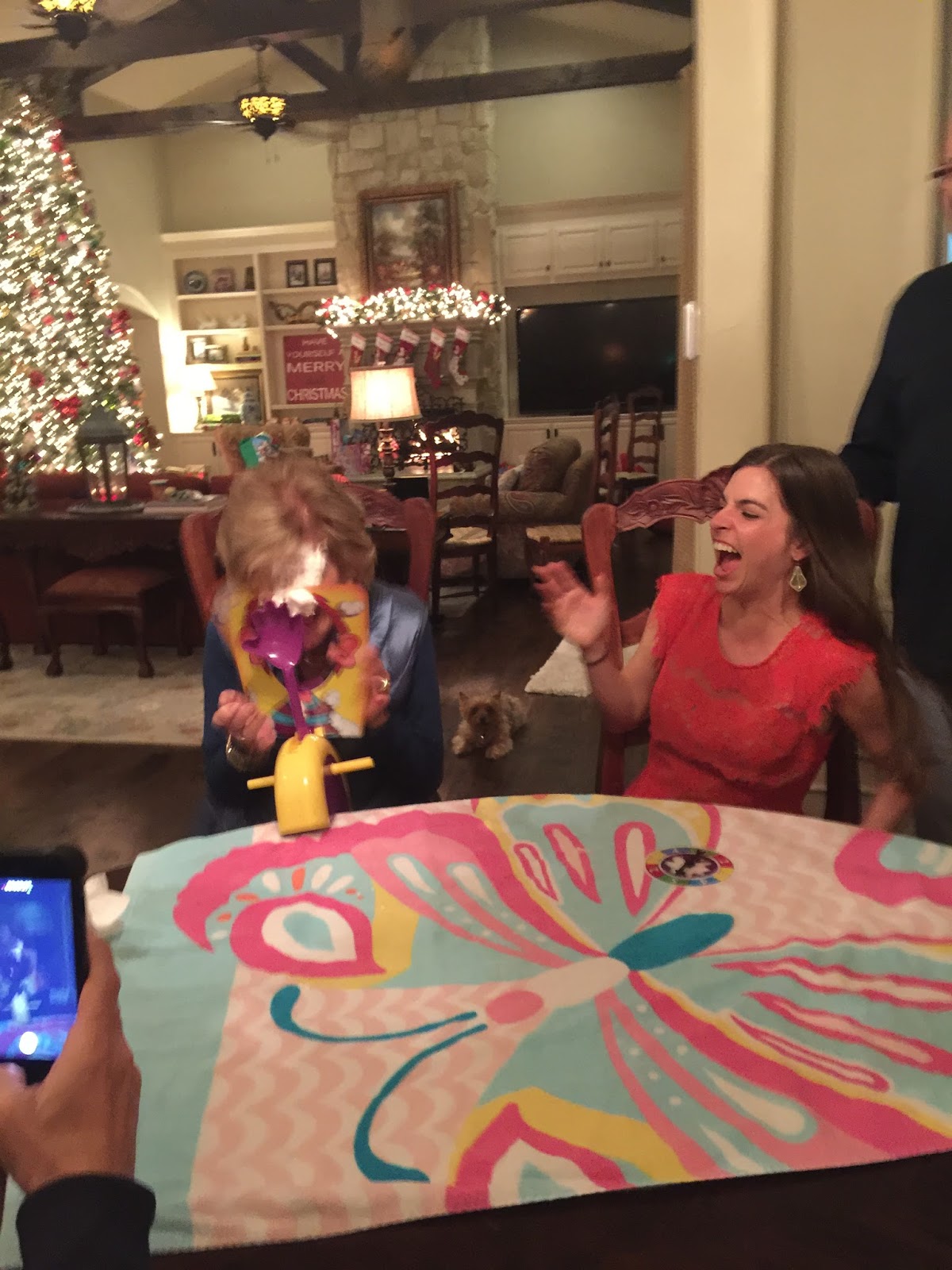 Smith sleeping under the dining room table & Granny playing pie face….two fun memories right there. Your Christmas looked very blessed this year!